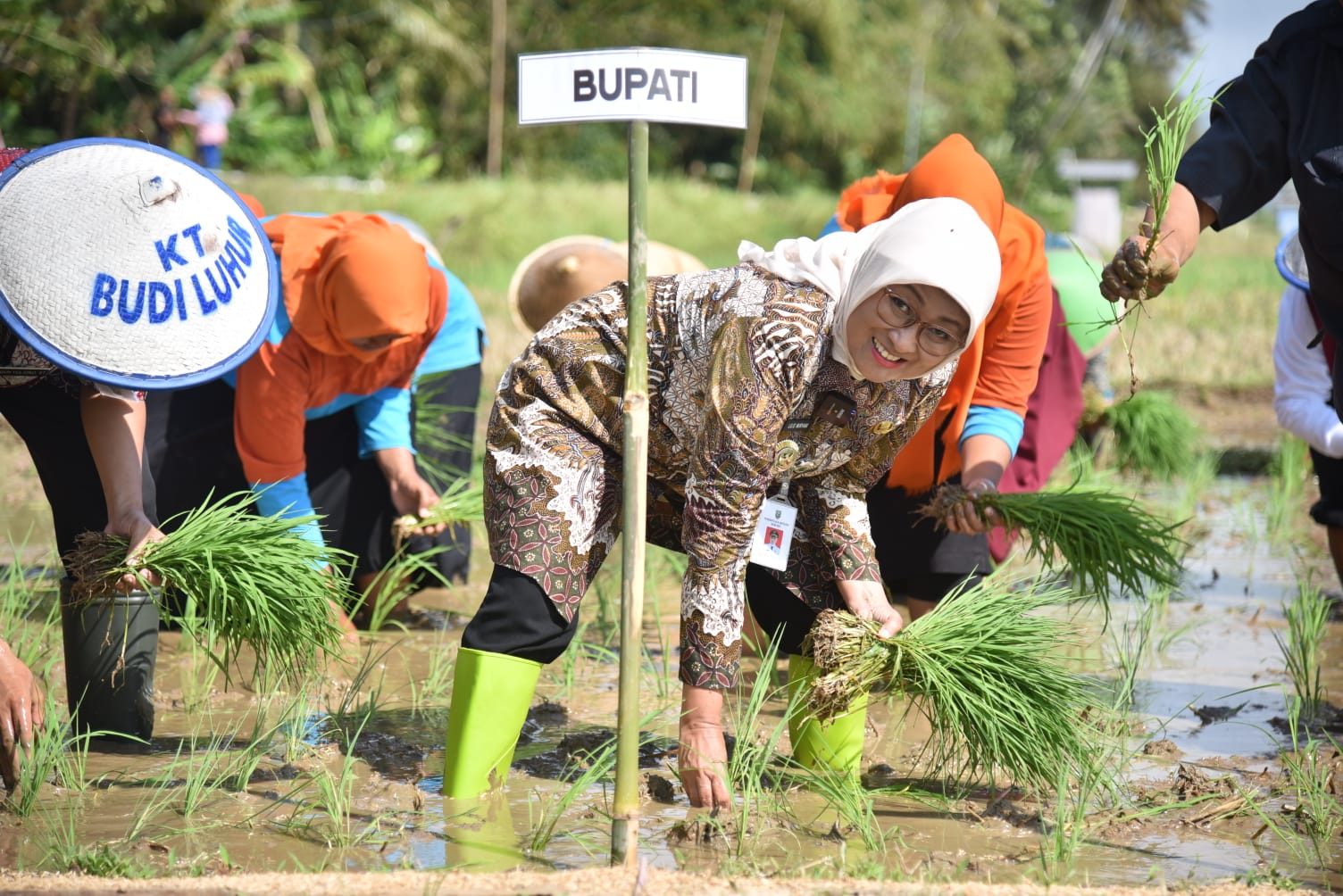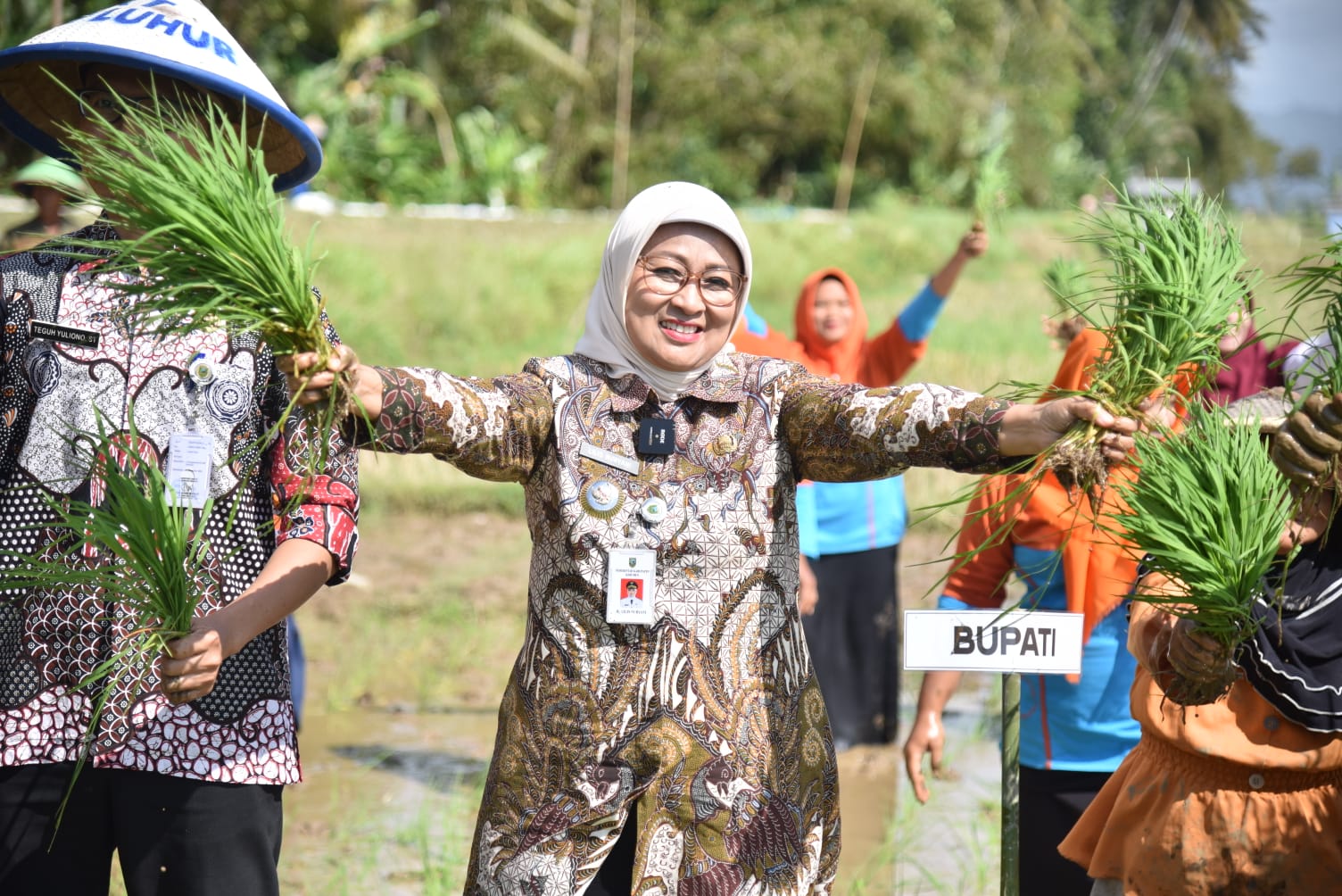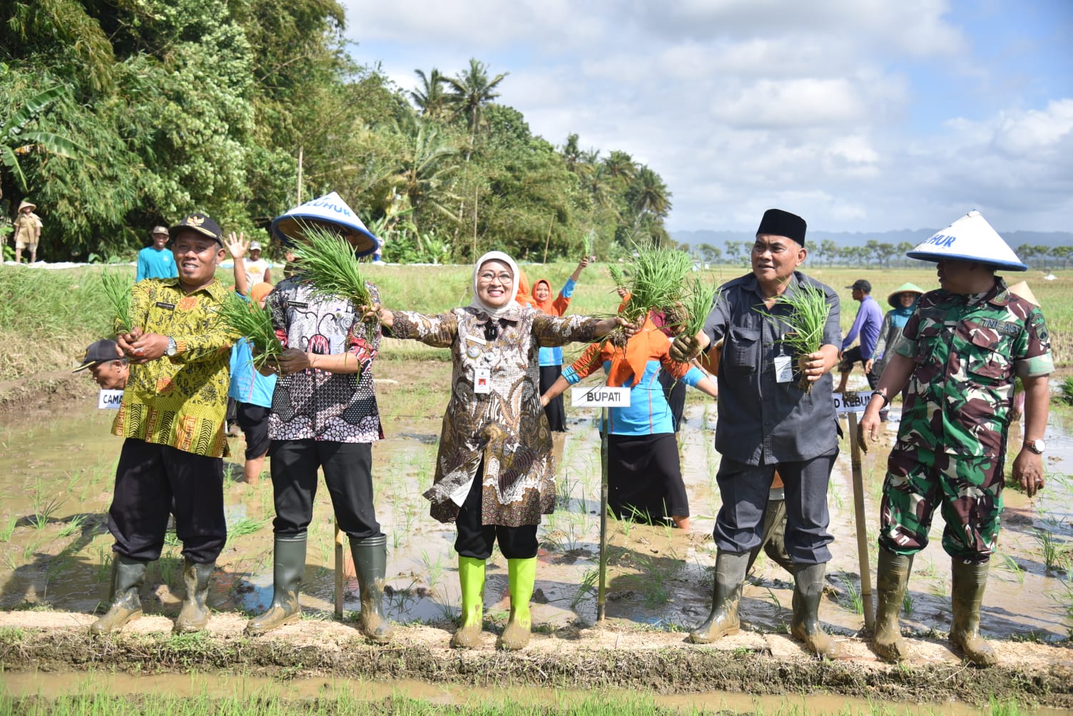Di kesempatan ini, Bupati Lilis melakukan penanaman padi simbolis bersama Kelompok Wanita Tani (KWT) Cendrawasih, didampingi Kadistapang, Wakil Ketua DPRD, Forkopimcam Puring, dan Kades Purwosari.