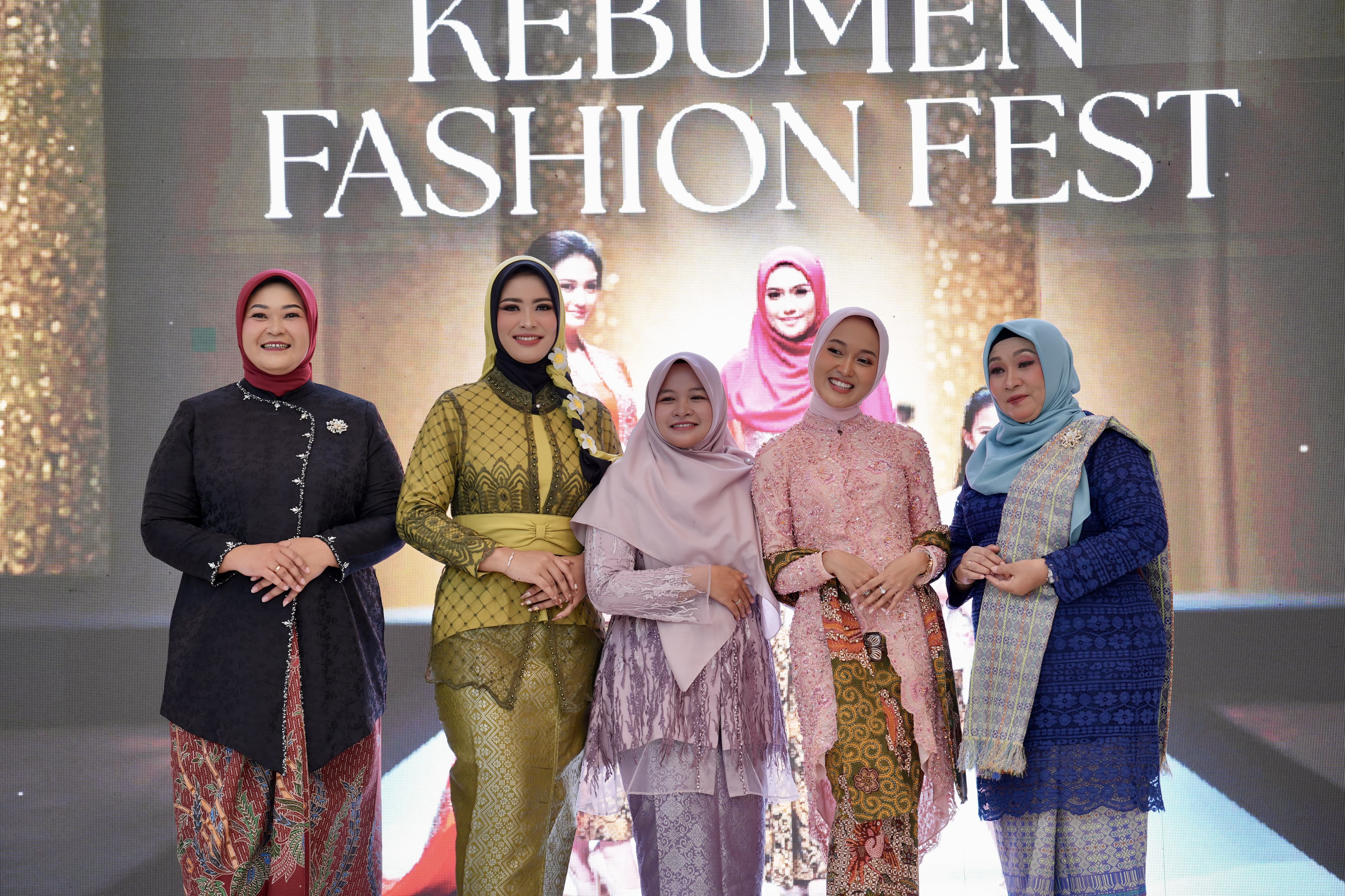 Puncaknya, para model dari berbagai kalangan naik ke atas panggung. Mulai dari pemenang ajang lokal seperti Syafa Partjingei (Juara 1 Mbak Kebumen 2025), hingga tokoh-tokoh penting seperti para ketua organisasi perempuan, owner rumah sakit, dan para pengusaha muda.