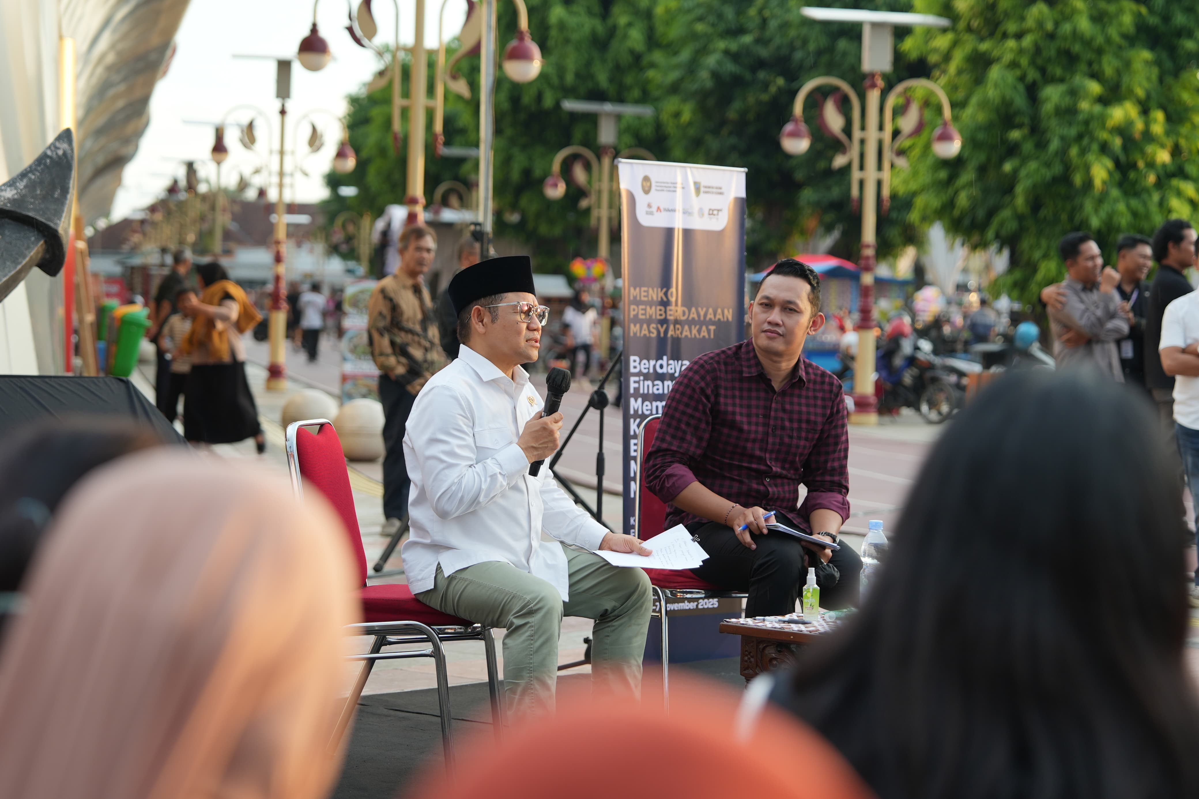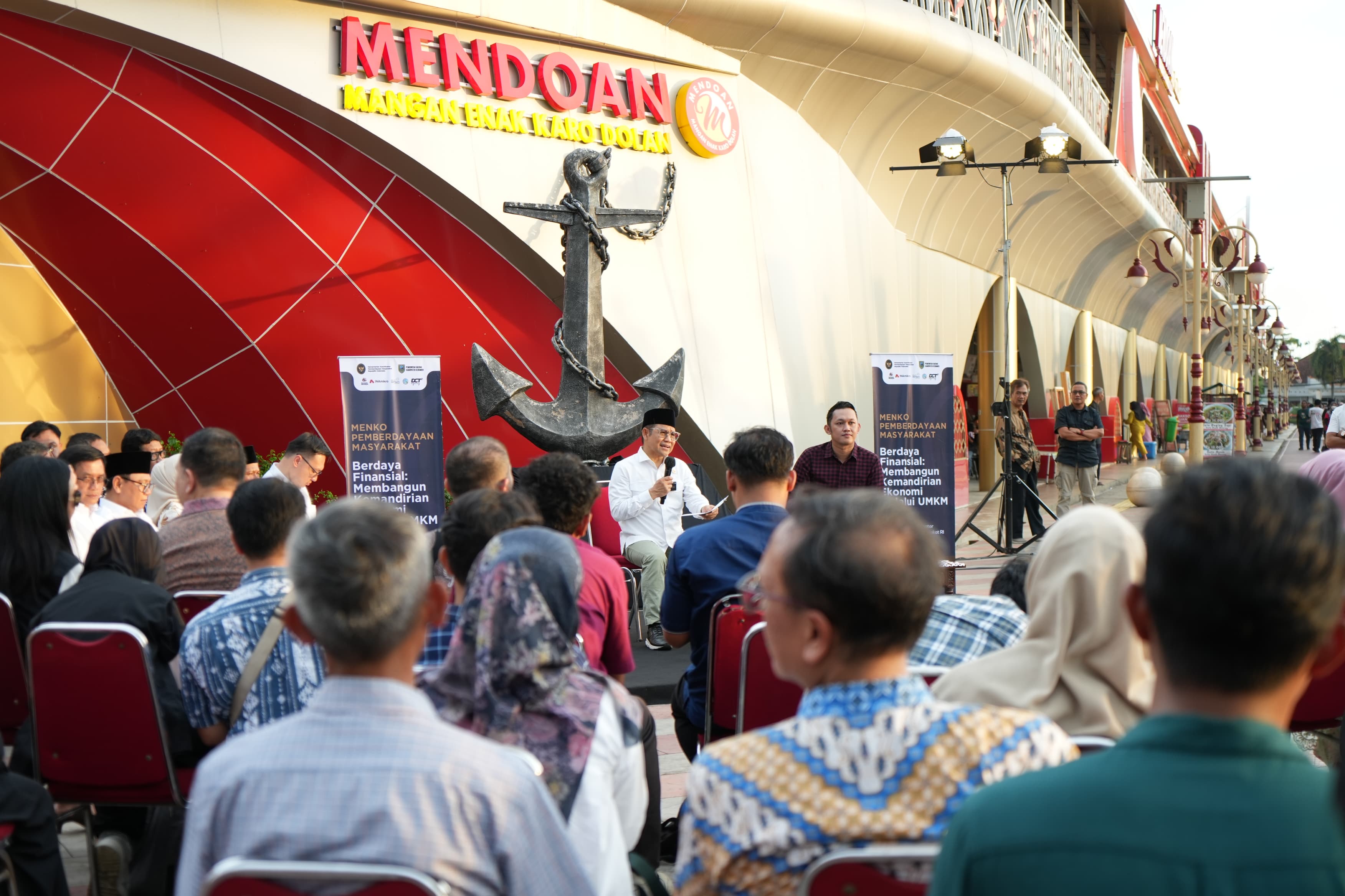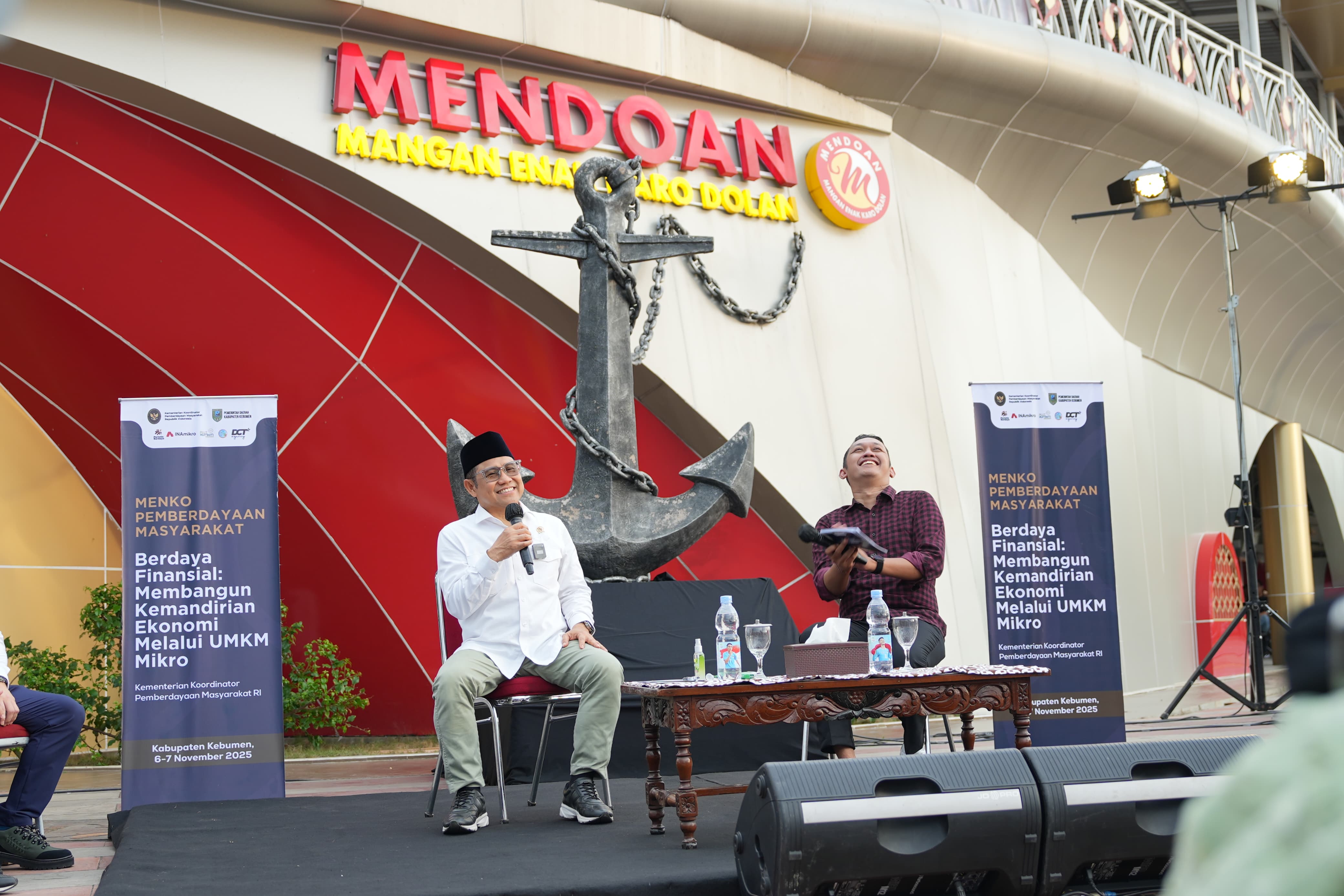 KEBUMEN – Setelah mengunjungi Rumah Inklusif Kebumen, Menteri Koordinator Pemberdayaan Masyarakat (Menko PM), Abdul Muhaimin Iskandar, yang akrab disapa Cak Imin, langsung menuju Alun-alun Pancasila untuk menghadiri dialog interaktif bertajuk "Membangun Kemandirian Ekonomi Melalui UMKM Mikro" di sisi utara Kapal Mendoan, Jumat 7 November 2025.