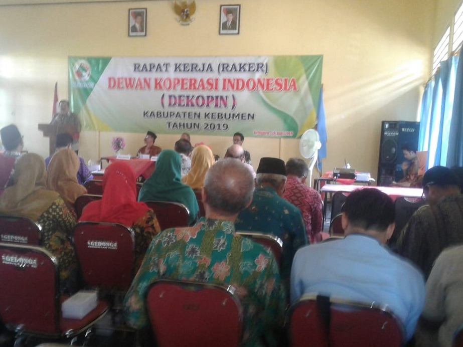 KEBUMENKAB.GO.ID - Dewan Koperasi Indonesia Daerah (Dekopinda) Kabupaten Kebumen menggelar Rapat Kerja (Raker) terkait laporan pelaksanaan program kerja dan APB tahun 2018, evaluasi kinerja tahun 2019 serta penyampaian rencana program kerja dan RAPB tahun 2020 di Aula Gedung Dekopinda Jl. Arungbinang No. 8B Kebumen, Rabu (26/6). Rakor yang dipimpin Ketua Dekopinda, Kadar M.Pd dan diikuti 60 anggota ini bertujuan untuk menyamakan pola pikir, sikap dan tindakan dalam proses pencapaian misi dan sasaran pelaksanaan program kerja Dekopinda menjadi lebih memiliki fungsi terhadap gerakan.