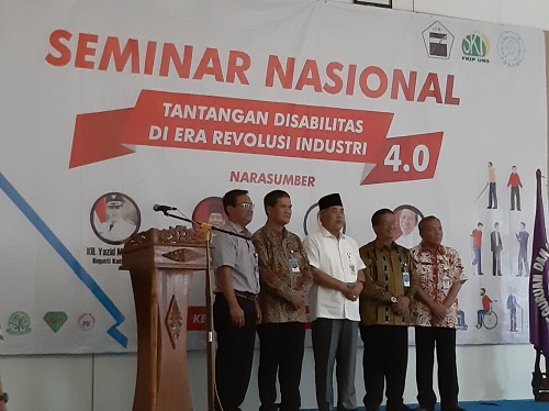 Seminar yang bertempat di Hotel Mexolie Kebumen Dihadiri oleh Bupati kebumen sekaligus sebagai Narasumber dengan Materi Kebijakan Pemkab dalam menghadapi Tantangan Disabilitas di Era Revolusi Industri 4.0.
