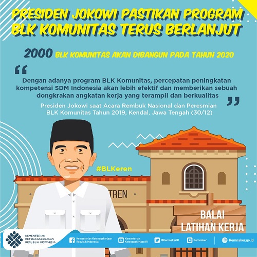 Program pengembangan BLK Komunitas merupakan terobosan dari Presiden Joko Widodo dalam peningkatan kompetensi tenaga kerja melalui pelatihan vokasi.