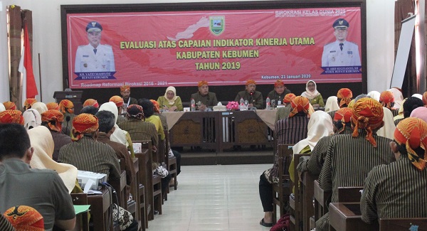 KEBUMENKAB.GO.ID - Pencapaian Indikator Kinerja Utama (IKU) Daerah sampai dengan tahun 2019 menunjukkan, dari total 26 IKU Daerah terdapat 24 indikator atau 92,31 persen yang telah tercapai. Sedangkan 2 indikator lainnya atau 2,69 persen belum tercapai, yaitu pertumbuhan ekonomi, serta prosentase PNS dan pegawai BUMD yang menyalurkan zakatnya melalui kelembagaan BAZ. Hal ini disampaikan dalam rapat capaian Indikator Kinerja Utama yang dimoderatori Sekretaris Daerah Ahmad Ujang Sugiono, Selasa pagi (21/1) di Ruang Jatijajar Kompleks Pendopo Rumah Dinas Bupati.