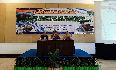 KEBUMENKAB.GO.ID - Dinas Kelautan dan Perikanan (Dislutkan) Kabupaten Kebumen pada tahun 2020 ini mengalokasikan anggaran sebesar Rp.1.010.727.000,- untuk program pengembangan budidaya perikanan di 8 kecamatan dengan target produksi perikanan mencapai 20 ton per tahun. Hal ini dikemukakan KepalaBidang Budidaya Perikanan, Budiono S.Pi mewakili Kepala Dislutkan Kebumen Drs. La Ode Haslan disela acara sosialisasi "Penerima Hibah Sarana dan Prasarana Bagi Pokdakan" di Hotel Mexolie Kebumen, Selasa (4 /2).