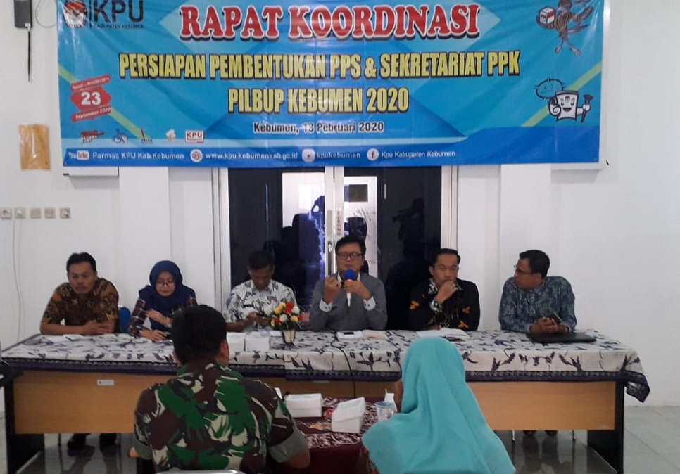 KEBUMENKAB.GO.ID - Tahapan Pemilihan Bupati Dan Wakil Bupati Kebumen tahun 2020 telah sampai pada pembentukan Badan Penyelenggara Adhoc. Untuk itu pada Kamis (13/02) bertempat di Kantor KPU Kabupaten Kebumen Jl. Arumbinang No.14 digelar Rapat Koordinasi Pembentukan Badan Penyelenggaraan Adhoc Pada Pemilihan Bupati Dan Wakil Bupati Kebumen tahun 2020 yang diikuti oleh perwakilan Forkopimda, OPD dan Kecamatan.