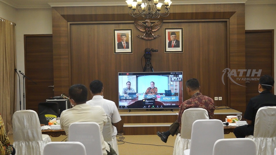 KEBUMENKAB.GO.ID - Dalam rangka persiapan pelaksanaan Pilkada serentak, Pemerintah Kabupaten Kebumen mengikuti video conference dengan Kemendagri, Komisioner KPU, Bawaslu, serta Kepala Daerah maupun yang mewakili dari seluruh Indonesia. Vidcon diadakan di Ruang Transit Pendopo Kebumen Rabu (10/06). Hadir dalam vidcon tersebut Asisten Pemerintahan dan Kesra Heri Setyanto, Kepala Bappeda Puji Rahayu, Kepala Satpol PP Agung Pambudi dan jajaran terkait.