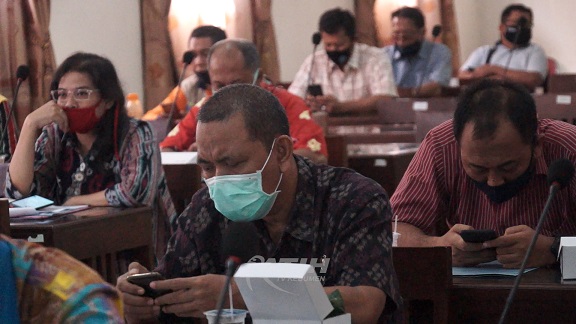 KEBUMENKAB.GO.ID - Bupati Kebumen KH Yazid Mahfudz menghadiri Rapat Koordinasi Persiapan New Normal, Selasa (23/06) di Ruang Jatijajar Kompleks Rumdin Bupati Kebumen.