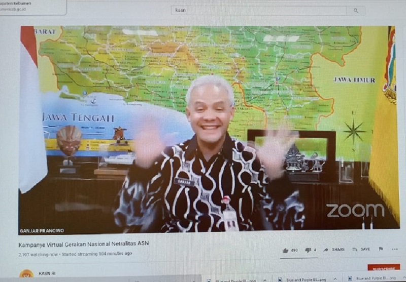 " Yang perlu diperhatikan, tidak perlu nge-like, tidak perlu pakai kaos, cukup simpan di hati pilihan anda," jelas Ganjar saat mengikuti Zoom Meeting dalam Kampanye Virtual Gerakan Nasional Netralitas ASN melalui kanal Youtube KASN RI, Rabu (26/8).