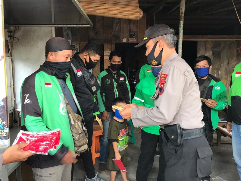 Melihat kondisi ini, Sat Binmas Polres Kebumen pun berinisiatif untuk memberikan sosialiasi pada pengemudi ojol agar aman saat melakukan pelayanan pada konsumen. Selasa (8/9) siang menyambangi komunitas ojol dan tukang becak di seputaran Kebumen.