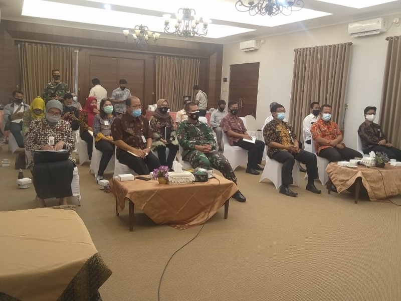 KEBUMENKAB.GO.ID - Sekretaris Daerah Ahmad Ujang Sugiono bersama forkopimda dan pimpinan OPD di lingkungan Pemkab Kebumen, Rabu (14/10) mengikuti video conference Rapat Koordinasi Sinergitas Kebijakan Pemerintah Pusat dan Daerah Dalam Pelaksanaan Regulasi Omnibuslaw. Rapat yang diikuti melalui video conference tersebut dilaksanakan dari Ruang Arumbinang, Kompleks Pendopo Rumah Dinas Bupati.