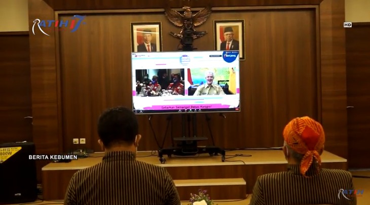 Bupati Kebumen KH Yazid Mahfudz mengikuti Webinar Bertema "Membumikan Budaya Anti Gratifikasi dan Anti Korupsi" dalam rangka Peringatan Hari Anti Korupsi Sedunia (HAKORDIA) Tahun 2020 melalui zoom meeting, Senin 21 des 2020 di Ruang Arumbinang, Kompleks Pendopo Rumdin Bupati Kebumen.