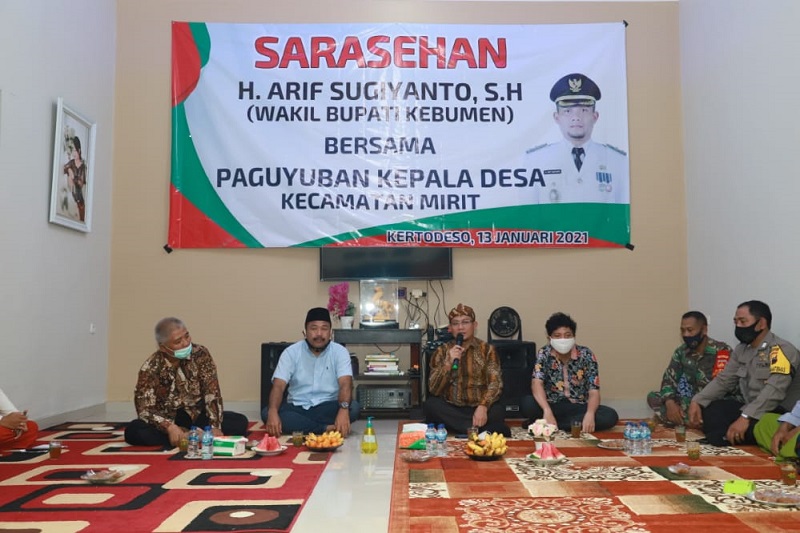 Hal tersebut disampaikan Wakil Bupati Arif Sugiyanto saat menggelar kegiatan Sarasehan Dengan Paguyuban Kepala Desa se-Kecamatan Mirit, yang berlangsung di kediaman Kepala Desa Kertodeso Kecamatan Mirit, Rabu (13/1).