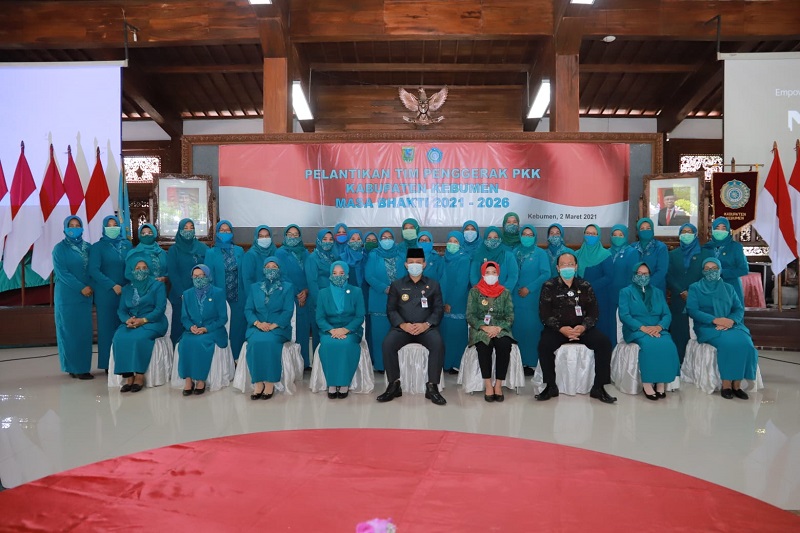KEBUMENKAB.GO.ID - Pelantikan Pengurus Tim Penggerak PKK Kabupaten Kebumen Periode Tahun 2021-2026 dilaksanakan di Pendopo Rumah Dinas Bupati Kebumen, Selasa (2/3).