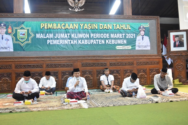 KEBUMENKAB.GO.ID – Pemkab Kebumen kembali menggelar kegiatan Yasin dan Tahlil Malam Jum'at Kliwon di Pendopo Rumah Dinas Bupati. Kegiatan dihadiri langsung oleh Bupati Arif Sugiyanto dan Wakil Bupati Ristawati Purwaningsih, Kamis (4/3).