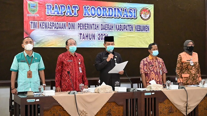 KEBUMENKAB.GO.ID - Bupati Arif Sugiyanto menekankan pentingnya deteksi dini untuk dapat mengantisipasi berbagai hal. Itu disampaikannya saat hadir dalam Rapat Koordinasi Tim Kewaspadaan Dini Pemerintah Kabupaten Kebumen Tahun 2021, Selasa (30/3) di Ruang Jatijajar Kompleks Pendopo Rumah Dinas.