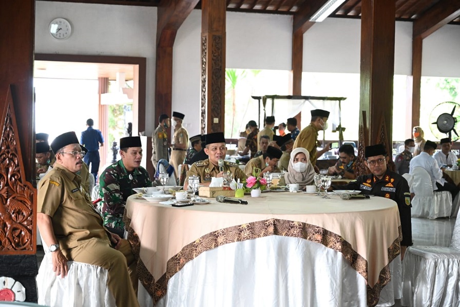 Usai shalat Idul Fitri, Bupati bersama seluruh jajaran terkait kemudian menggelar halalbihalal secara virtual dengan para Camat di Pendopo Rumah Dinas Bupati. Seperti halnya Bupati, para Camat juga melaksanakan shalat Idul Fitri dengan pakaian dinas.