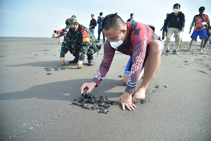 Bupati Kebumen Lepasliarkan 500 Ekor Tukik di Lahan Konservasi Kalibuntu