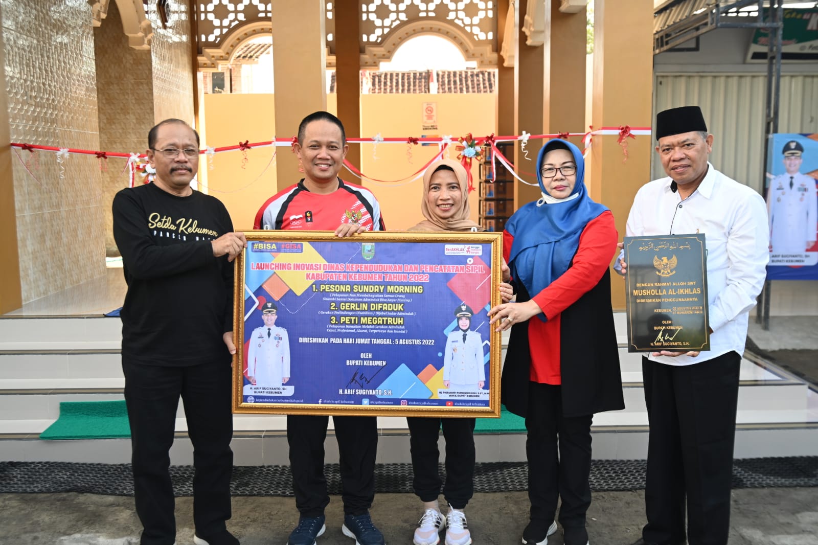 KEBUMENKAB.GO.ID - Bupati Arif Sugiyanto meresmikan Mushola Al Ikhlas kompleks Dinas Disdukcapil Kabupaten Kebumen di Jalan HM Sarbini. Peresmian itu sekaligus dengan dilaunchingnya beberapa program inovasi pelayanan kependudukan, Jumat (5/8).
