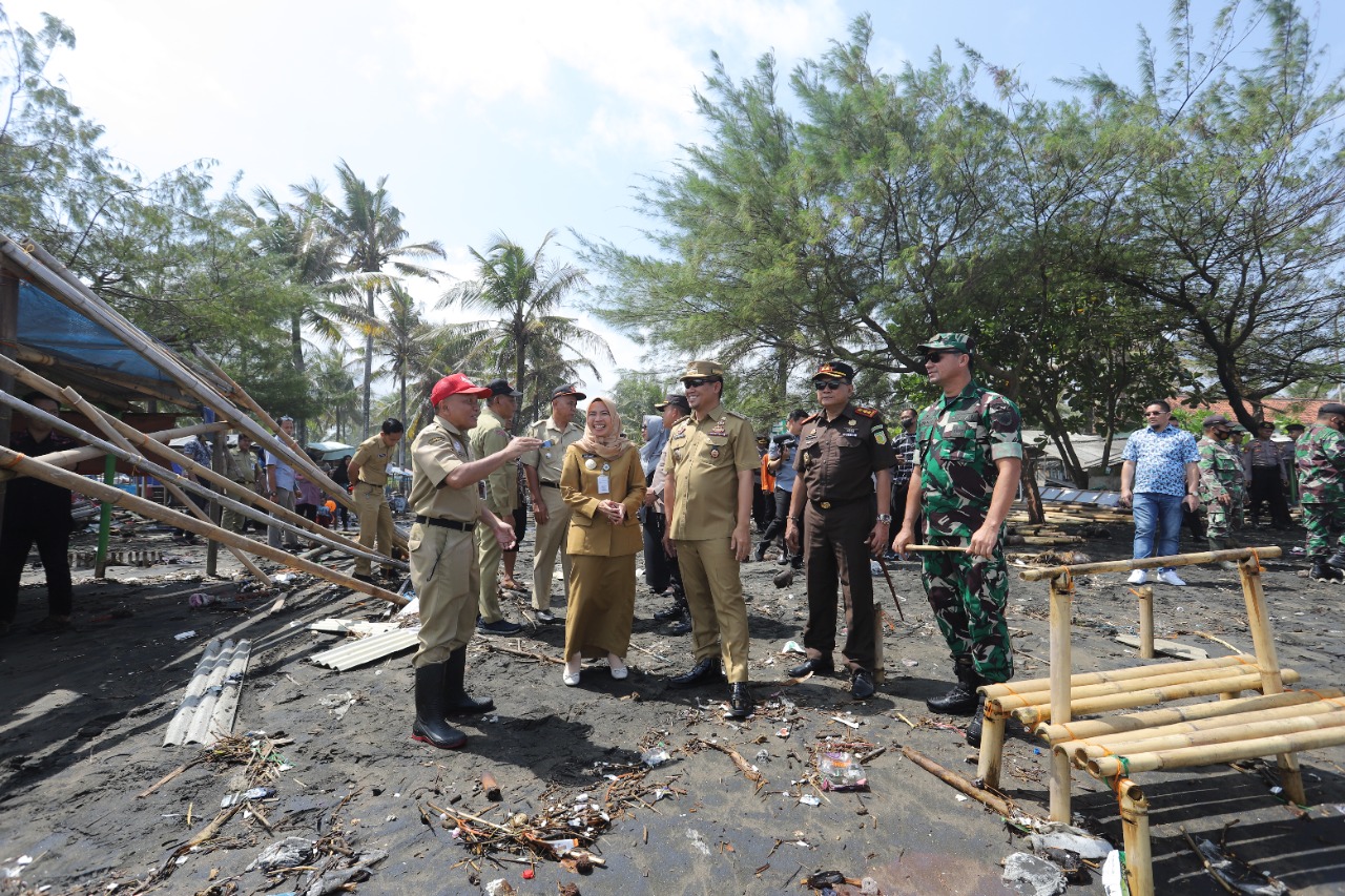 Bupati Tinjau Lokasi Gelombang Tinggi yang Merusak Ratusan Warung di Pantai Suwuk