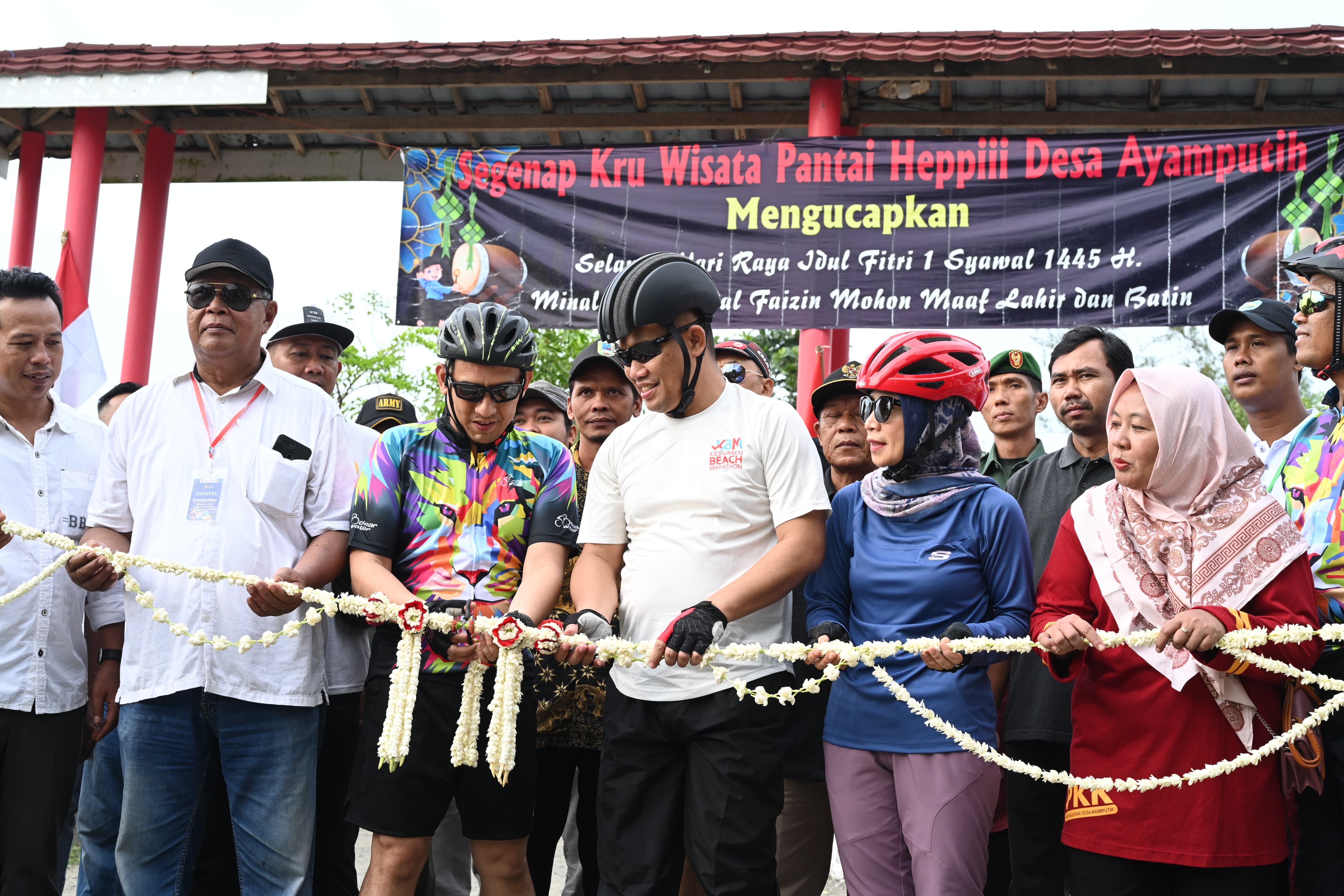 Bupati datang ke Pantai Heppii dengan menggunakan sepeda dari Pendopo Kabumian bersama Wakil Bupati Ristawati Purwaningsih, jajaran Forkompimda, para pimpinan OPD, Pimpinan BUMD, camat, lurah, staf pemerintahan dan masyarakat, berjumlah ratusan
