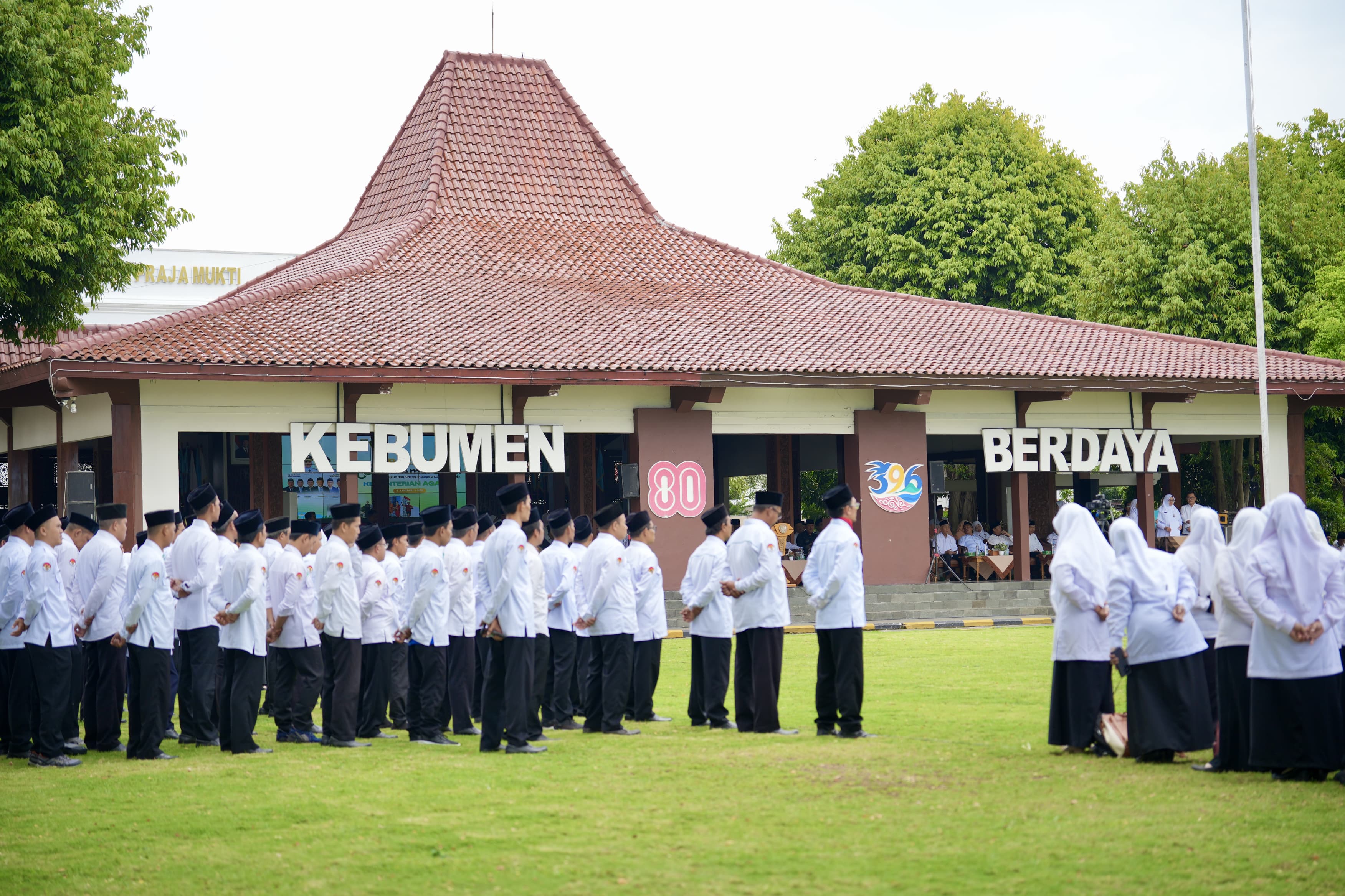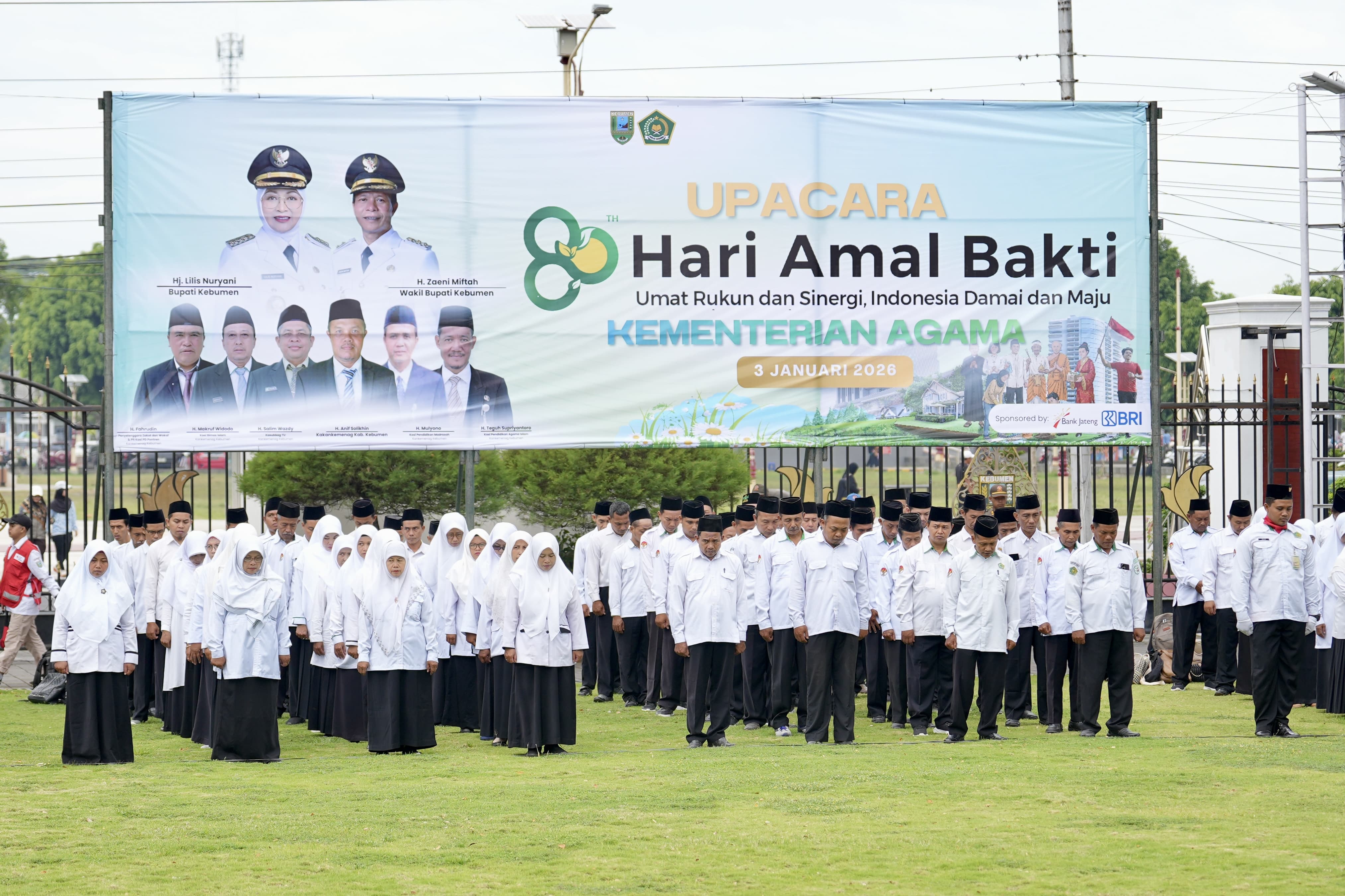 KEBUMEN – Pemerintah Kabupaten Kebumen menggelar Upacara Peringatan Hari Amal Bakti (HAB) ke-80 Kementerian Agama Republik Indonesia di halaman Pendopo Kabumian, Sabtu (3/1/2026). Upacara yang berlangsung khidmat ini mengusung tema "Umat Rukun dan Sinergi, Indonesia Damai dan Maju".
