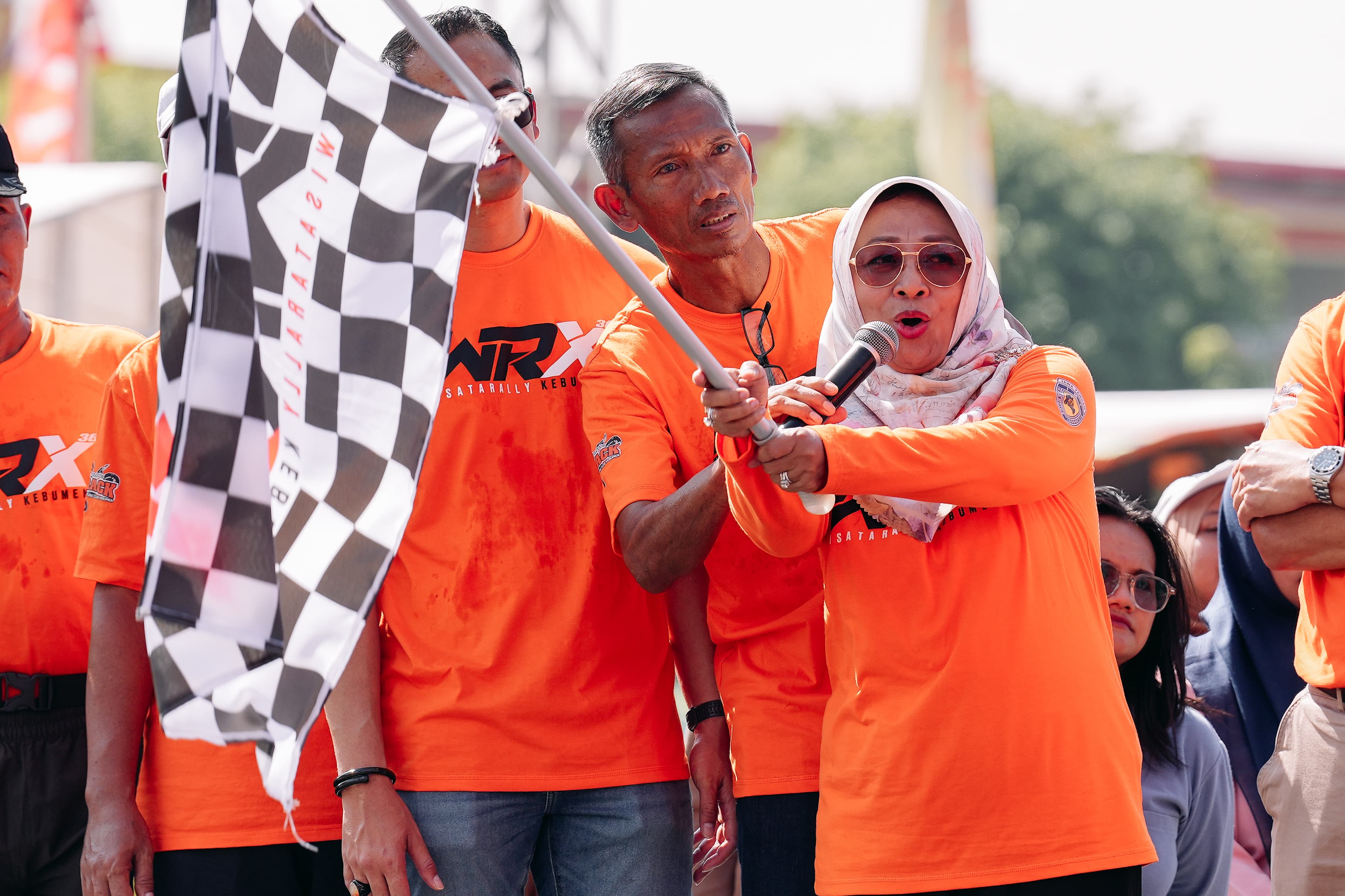 "Dengan mengucap bismillahirrahmanirrahim, saya berangkatkan peserta WRX," ucap Bupati Lilis sesaat sebelum melakukan flag-off di atas podium.