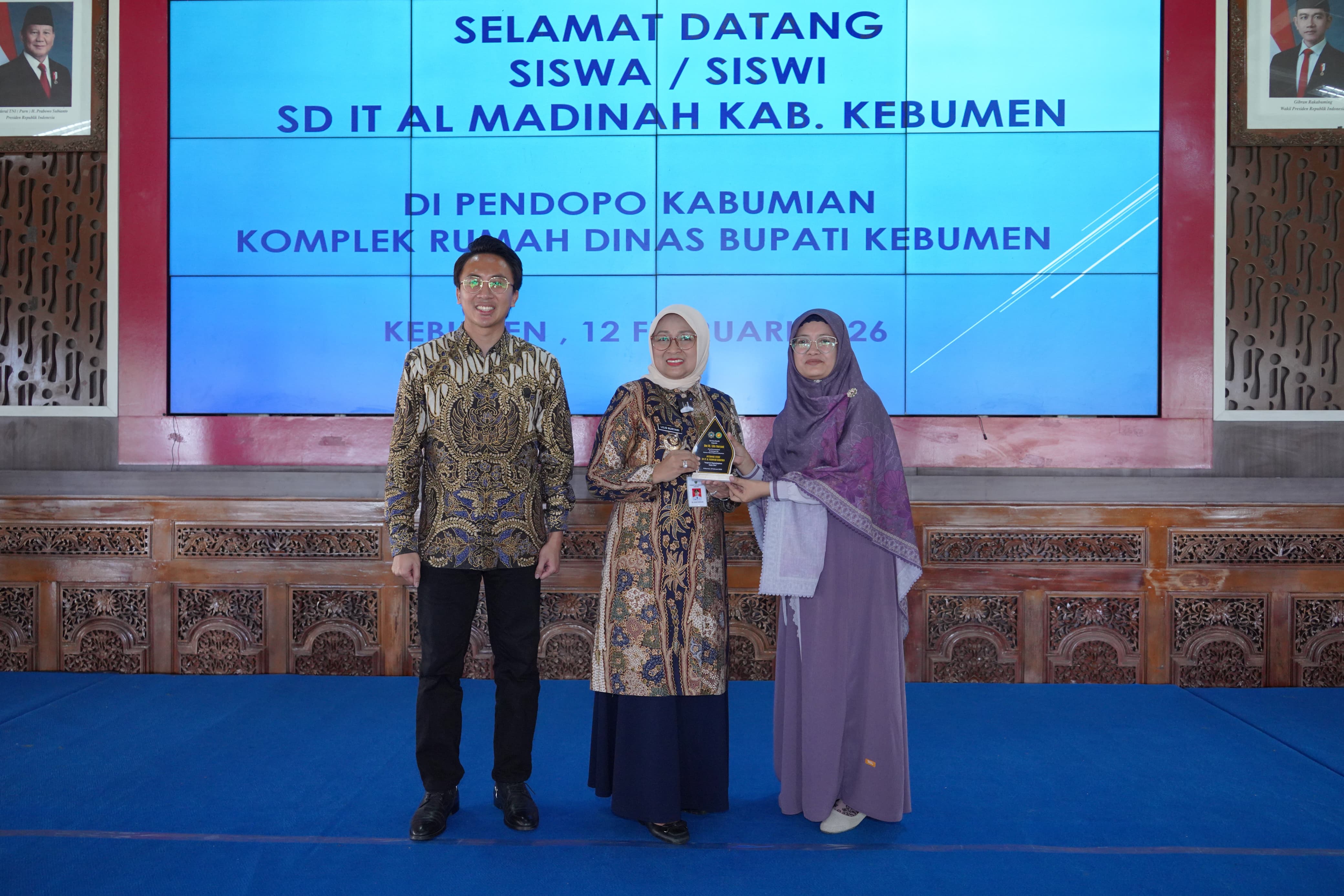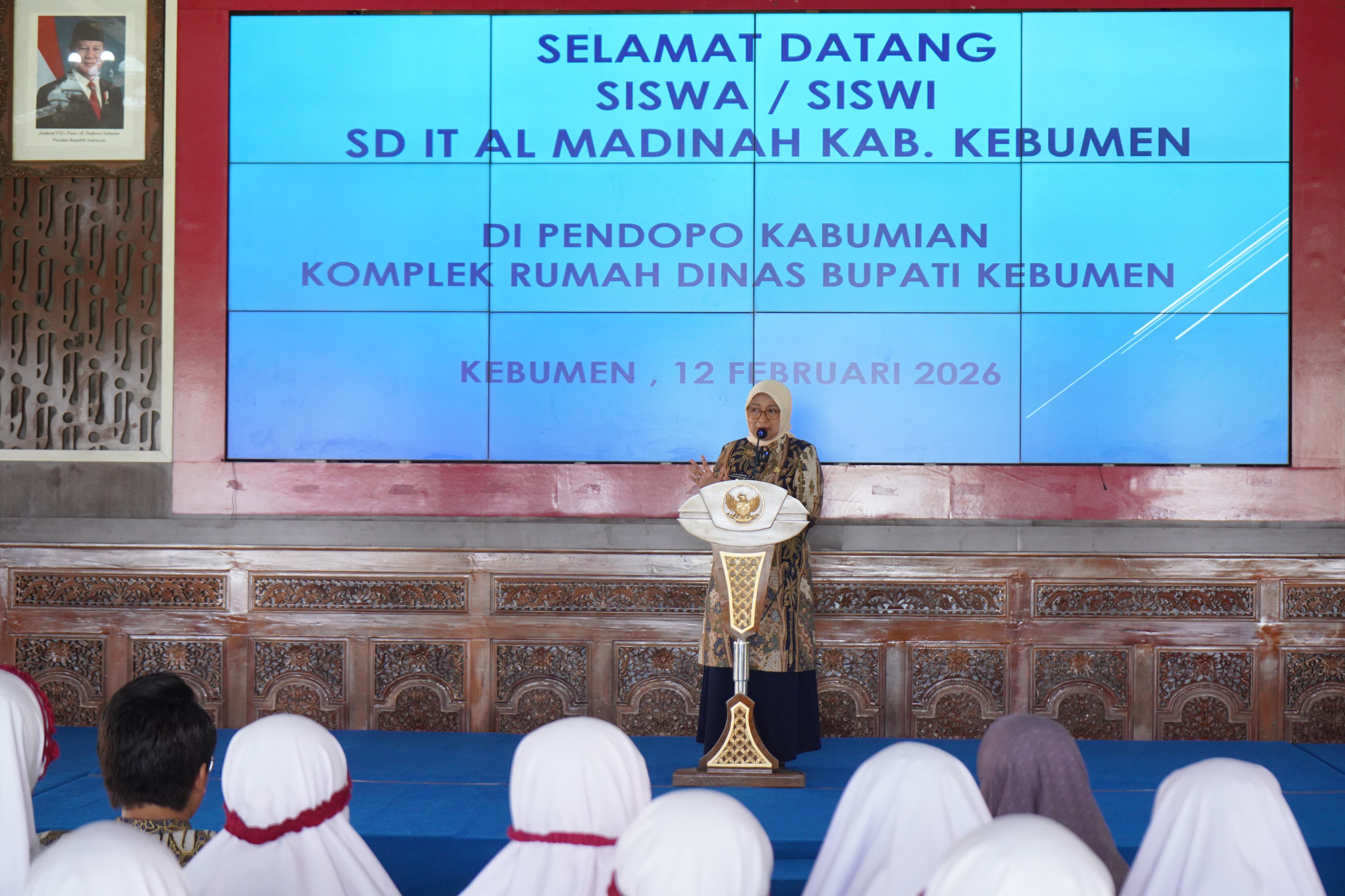 KEBUMEN – Puluhan murid kelas 6 SDIT Al Madinah Kebumen melakukan kunjungan edukasi (outdoor study) ke Pendopo Kabumian dan Kompleks Rumah Dinas Bupati Kebumen pada Kamis (12/2/2026). Kegiatan bertajuk "Inspirasi Kepemimpinan" ini bertujuan untuk mengenalkan sosok pemimpin daerah serta memberikan motivasi langsung kepada para siswa.