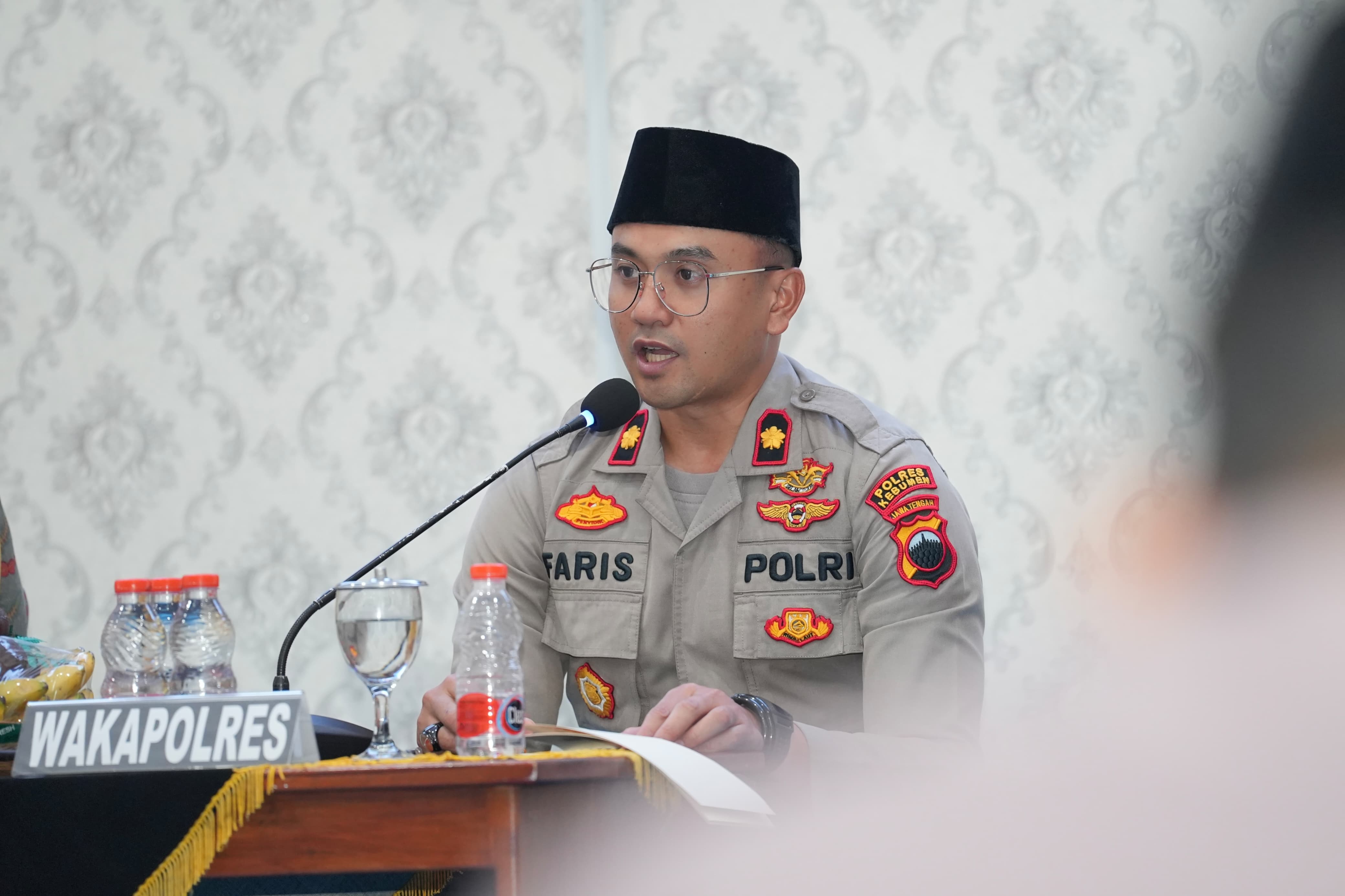 Mewakili Kapolres Kebumen AKBP I Putu Bagus Krisna, Wakapolres Kompol Faris Budiman menyambut hangat kehadiran para tamu undangan. Dalam berbagai hal, Kompol Faris menekankan bahwa sinergi antara pemerintah, aparat yang mengayomi, dan ulama yang menyejukkan adalah kunci terciptanya situasi Keamanan dan Ketertiban Masyarakat (Kamtibmas).