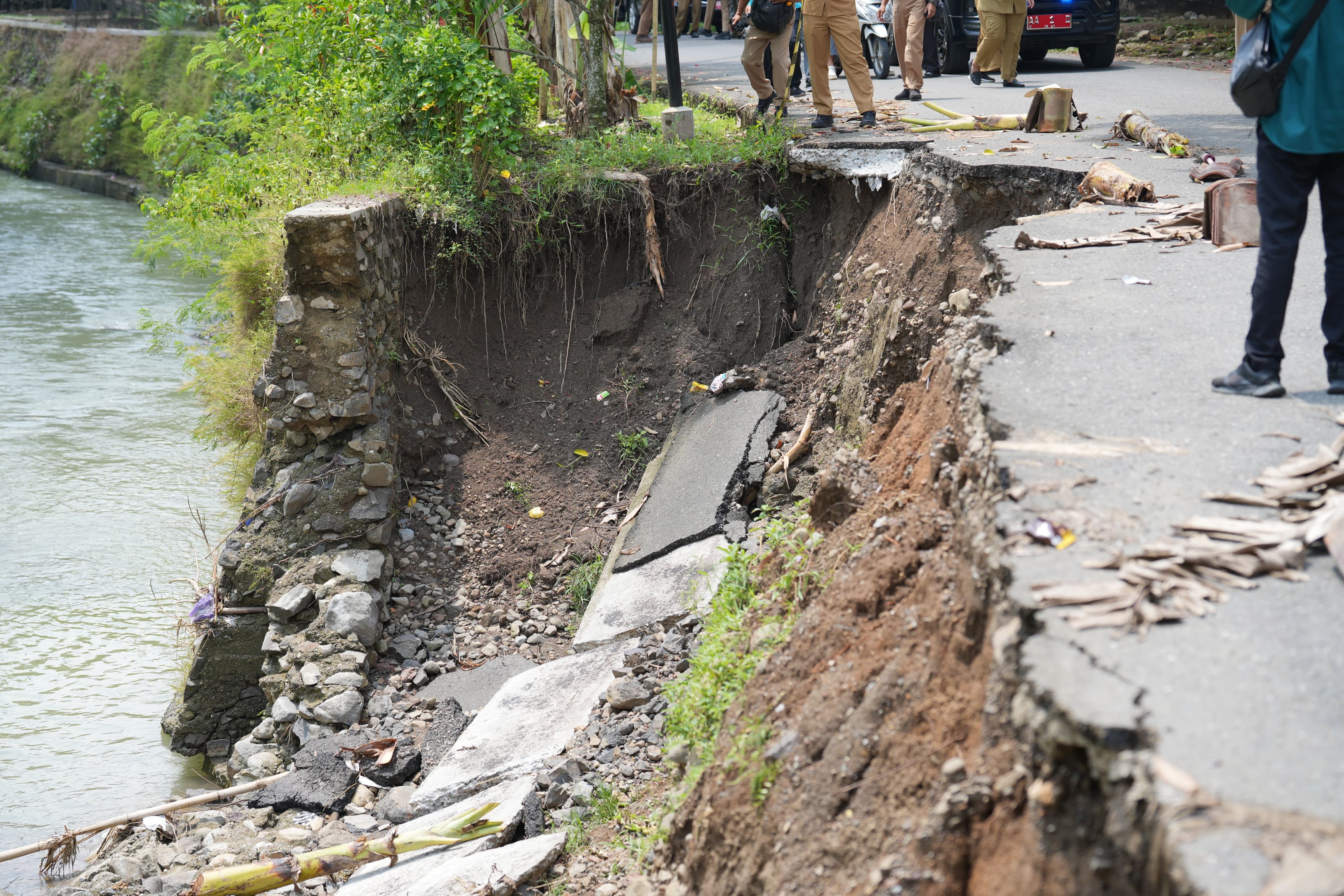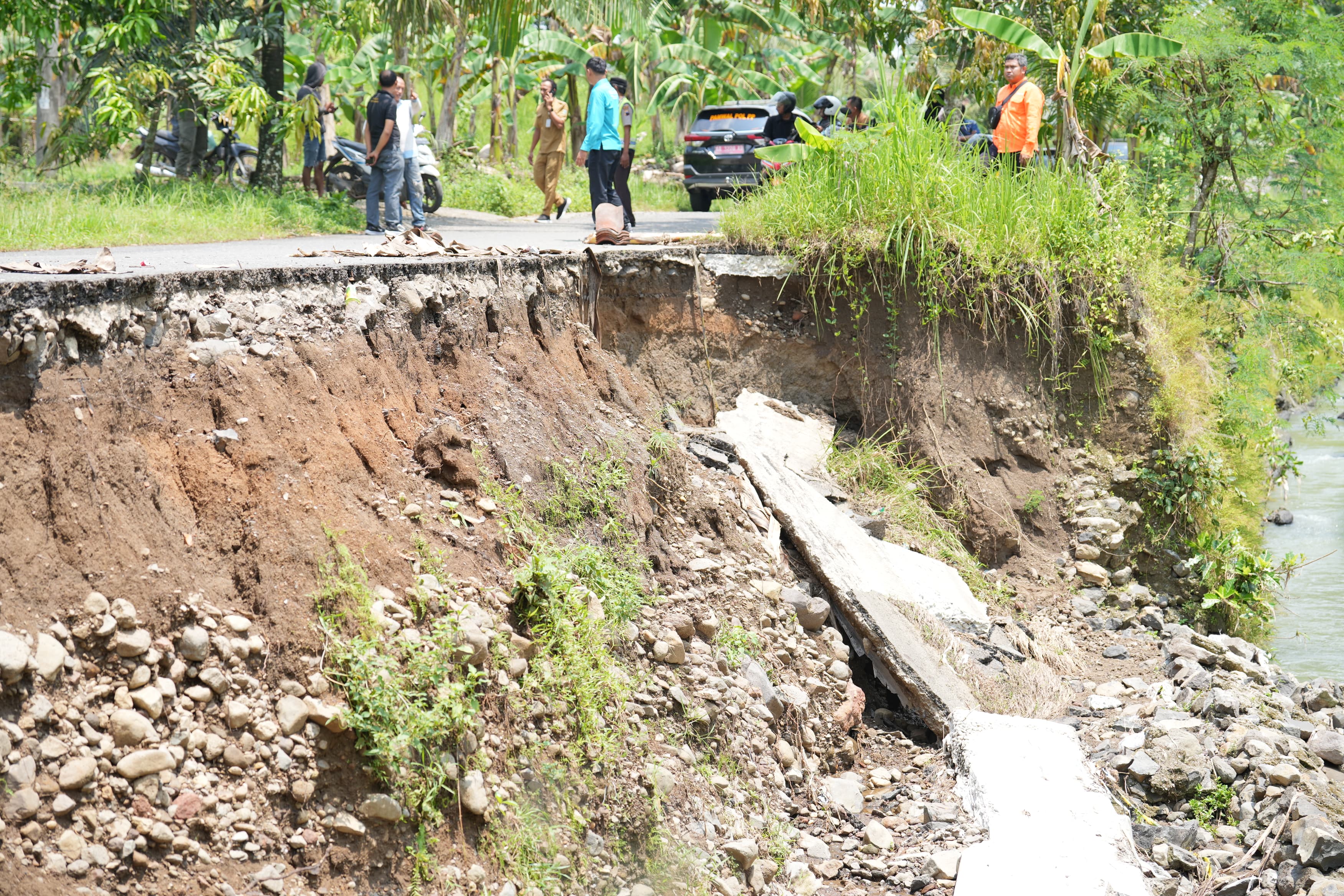 Di Desa Logandu, penanganan mendesak akan dilakukan menggunakan anggaran rutin sebesar Rp200 juta untuk pemasangan bronjong setinggi 5 meter. Sementara itu, di Desa Clapar, Bupati meninjau lokasi longsoran yang memerlukan penanganan lebih kompleks.