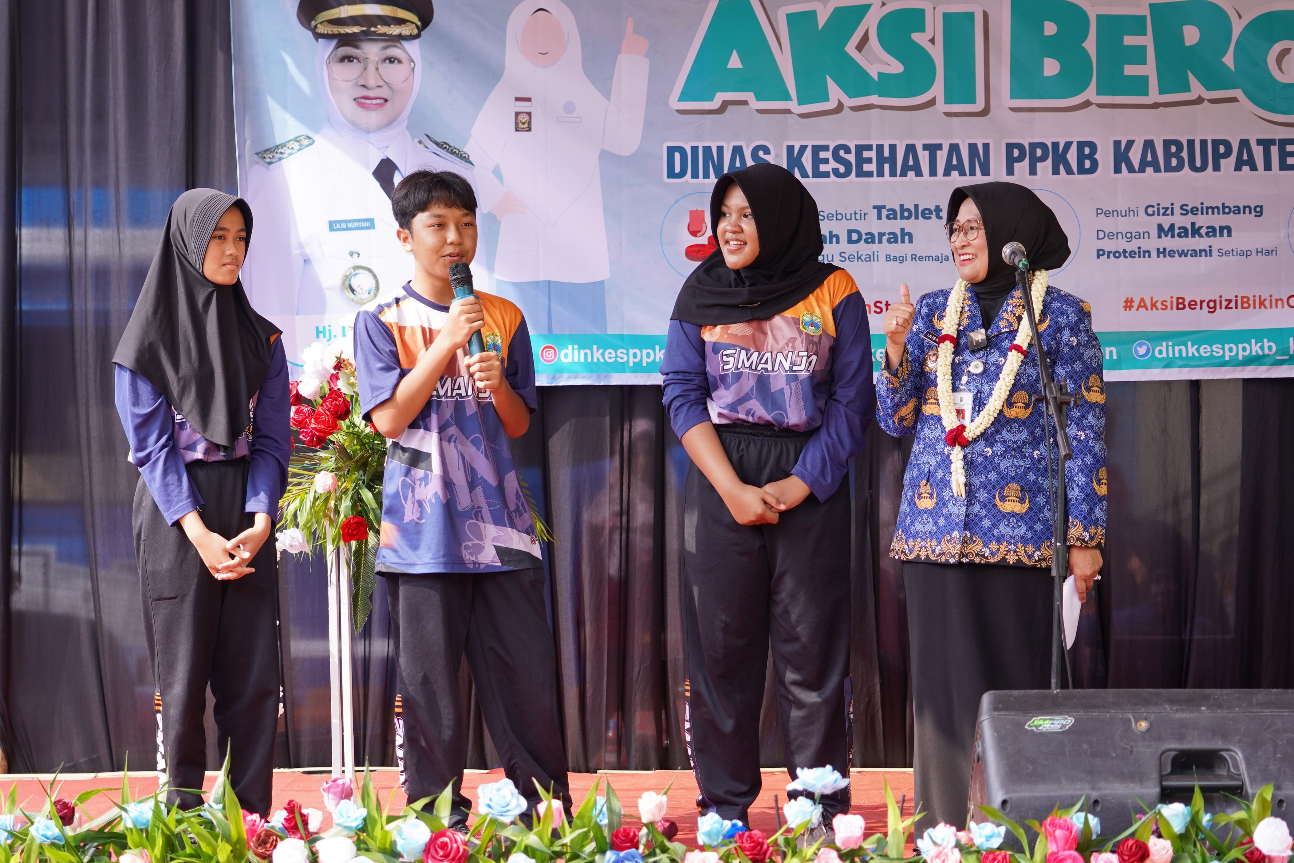 "Jika perut kosong, kalian sulit fokus dan cepat lelah di kelas. Menjaga kesehatan itu sederhana; pilih makanan bergizi seimbang, perbanyak air putih, dan jangan abai pada tablet tambah darah bagi remaja putri. Ini adalah bentuk rasa sayang pada diri sendiri agar kalian siap menghadapi masa depan," pesan Bupati Lilis.