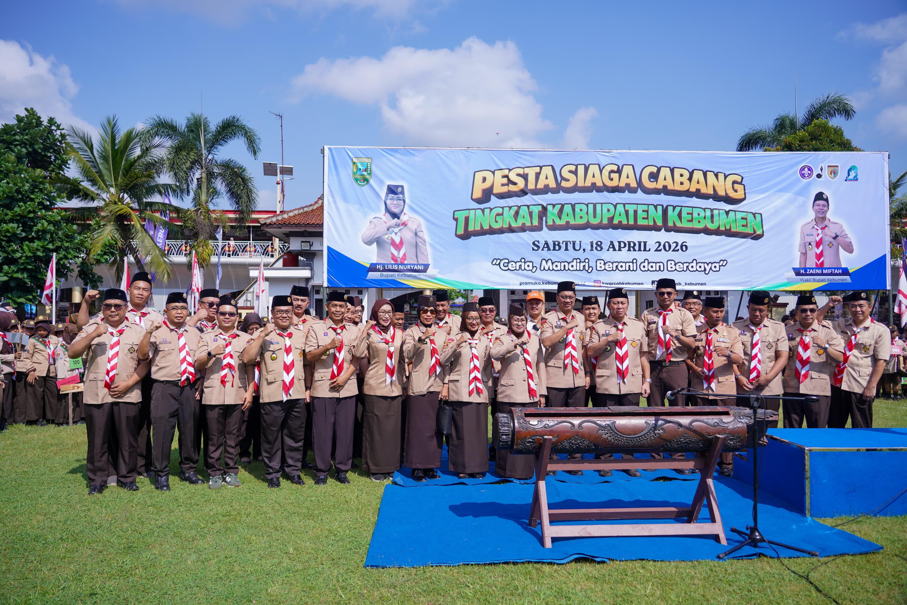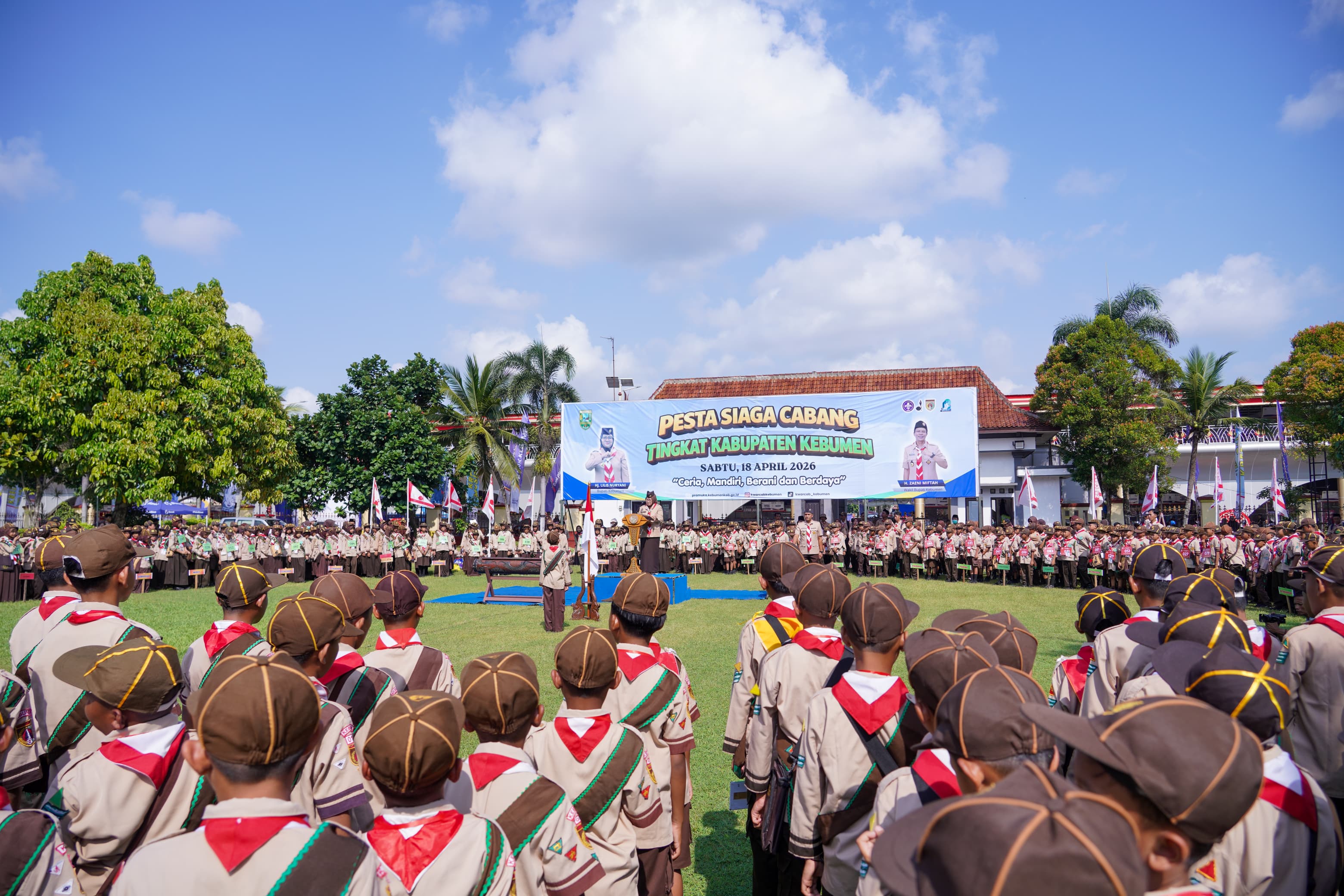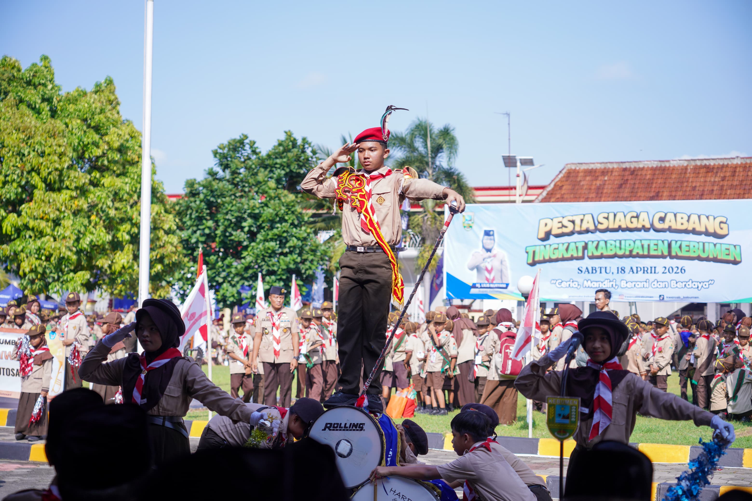 KEBUMEN – Gerakan Pramuka Kwartir Cabang (Kwarcab) Kebumen menggelar Pesta Siaga Tingkat Kabupaten Tahun 2026, Sabtu, 18 April 2026. Kegiatan yang dipusatkan di Komplek Sekretariat Daerah Kabupaten Kebumen ini mengusung tema "Ceria, Mandiri, Berani, dan Berdaya" sebagai wadah pertemuan, kompetisi, serta sarana penguatan karakter bagi para Pramuka Siaga di wilayah Kabupaten Kebumen.