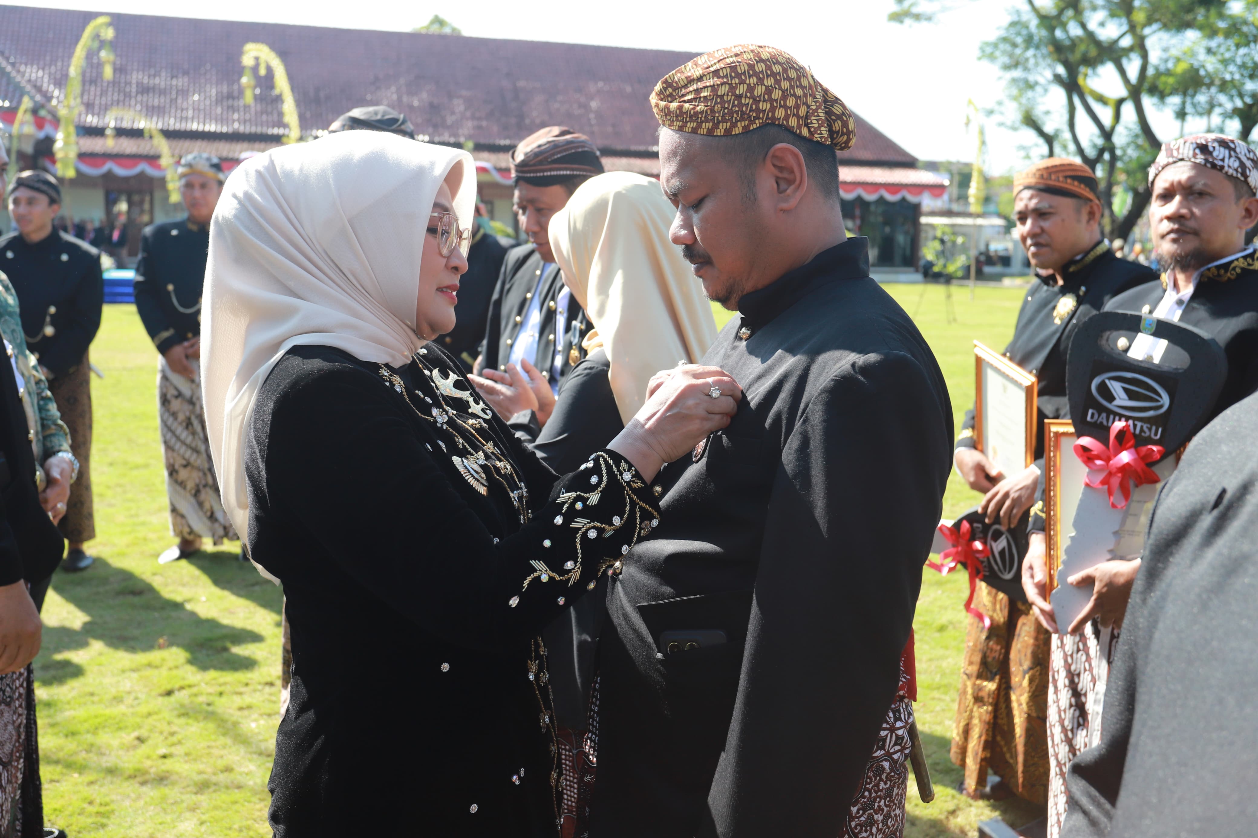 Yang lebih unik, upacara dilaksanakan dalam bahasa Jawa. Bupati Lilis terlihat lancar mengucapkan kosakata Jawa, baik saat memberikan perintah maupun saat sambutan.