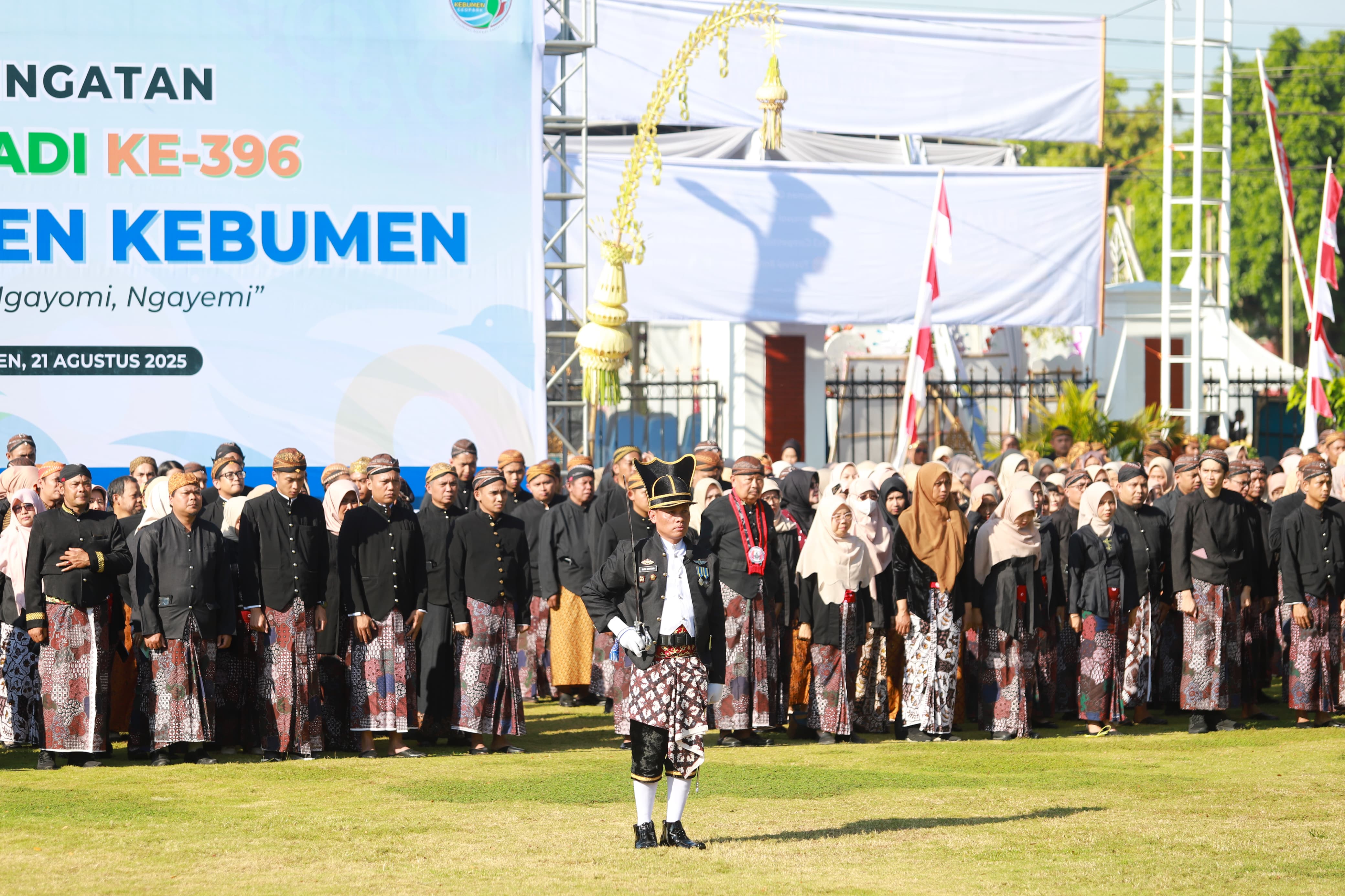 KEBUMEN – Upacara peringatan Hari Jadi ke-396 Kabupaten Kebumen di halaman Pendopo Kabumian, Kamis, 21 Agustus 2025, berlangsung dalam nuansa adat budaya Jawa.
