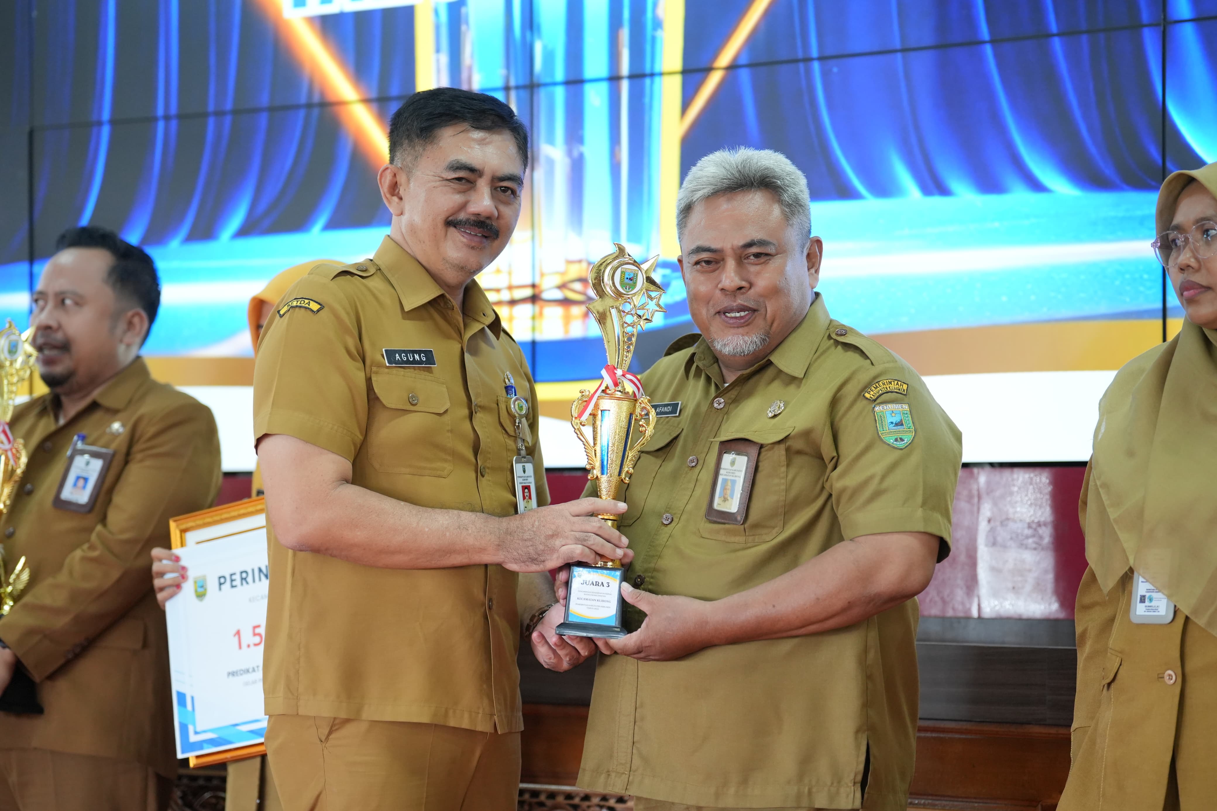 Untuk kategori kecamatan, juara pertama diraih Kecamatan Puring dengan nilai 94,24. Lalu Kecamatan Padureso nilai 92,87 di juara kedua, dan Kecamatan Klirong juara ketiga dengan nilai 90,63.
