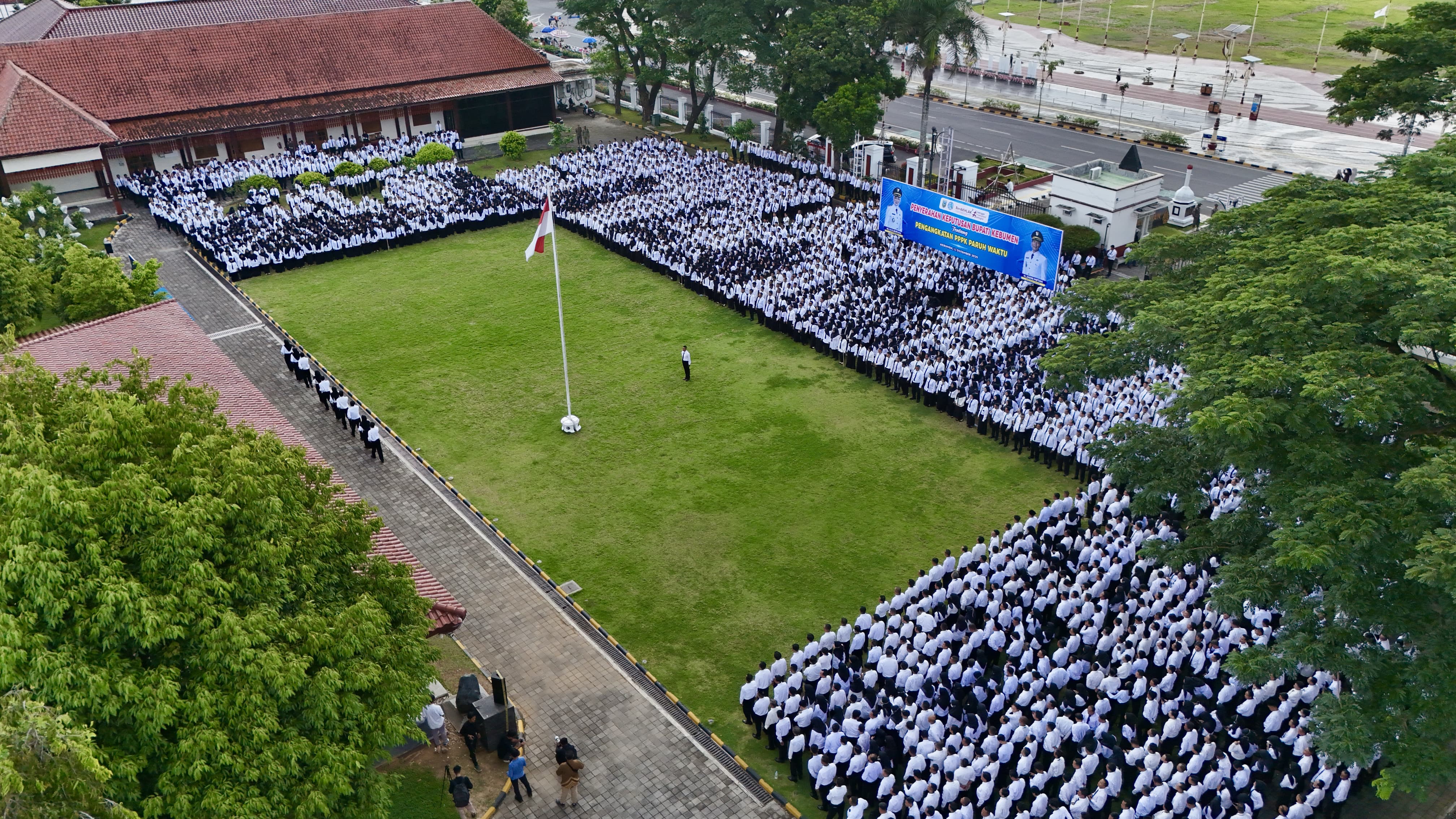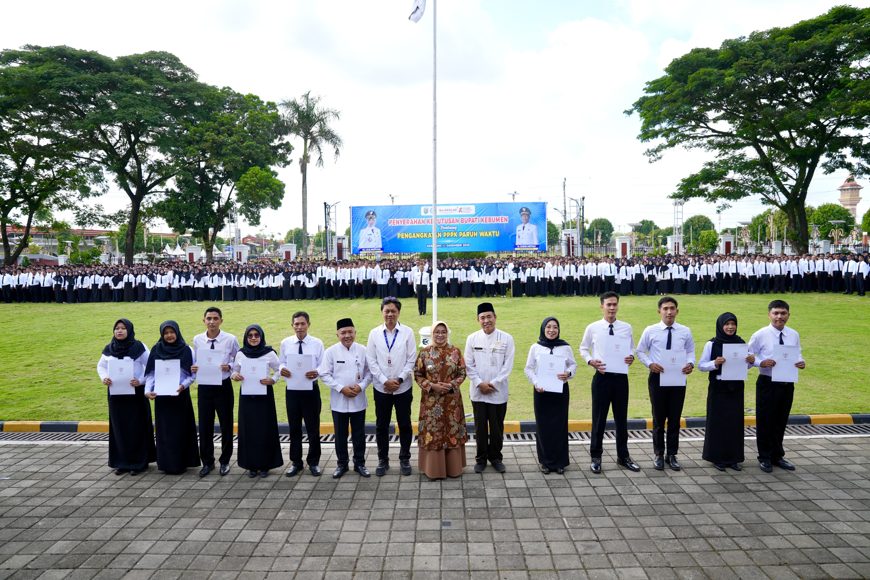 KEBUMEN – Pemerintah Kabupaten (Pemkab) Kebumen secara resmi menyerahkan Surat Keputusan (SK) Bupati tentang Pengangkatan Pegawai Pemerintah dengan Perjanjian Kerja (PPPK) Paruh Waktu kepada 3.551 pegawai. Acara penyerahan berlangsung khidmat dalam apel yang digelar di halaman Pendopo Kabumian, Jumat (12/12/2025).