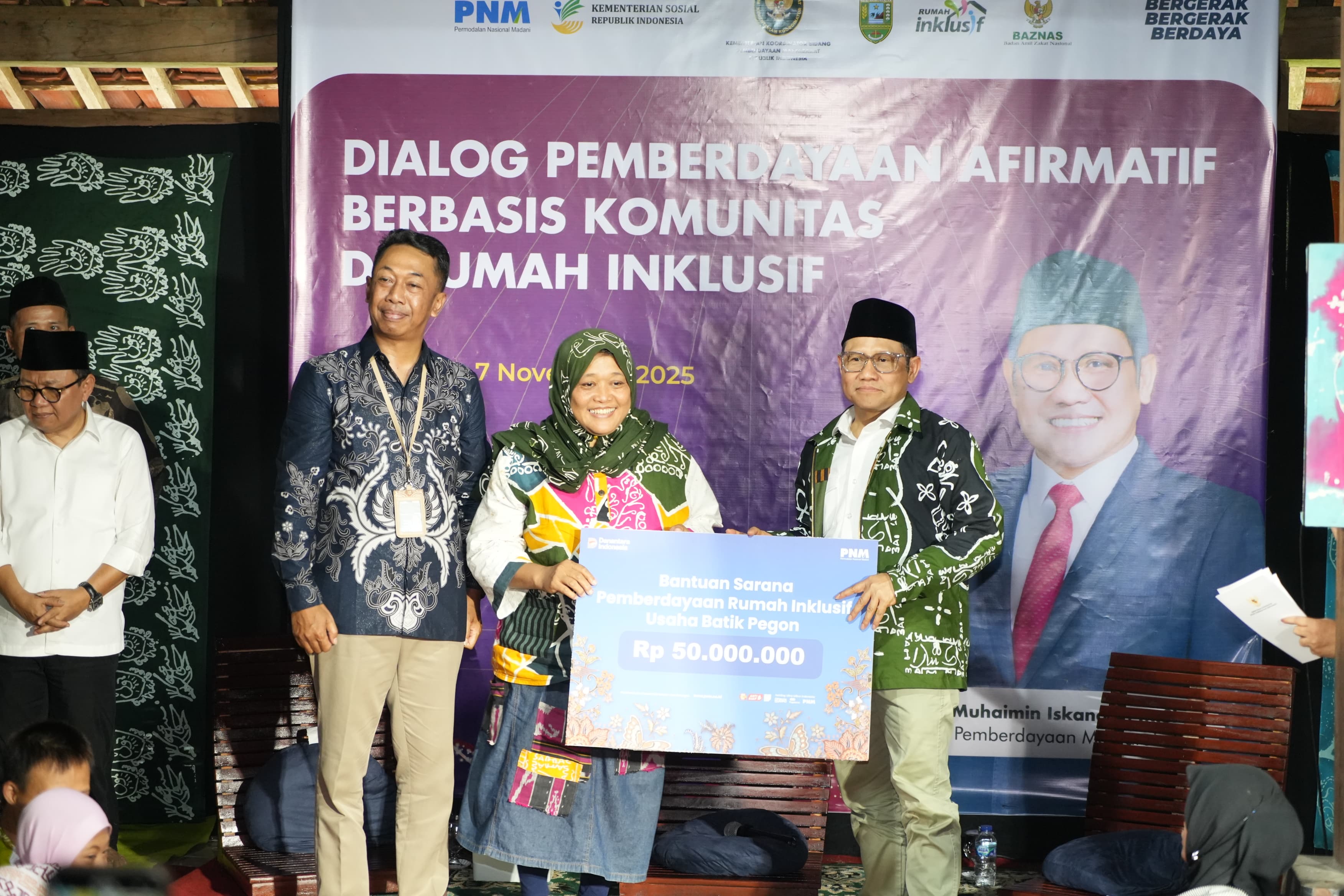 Sebagai bentuk nyata dukungan, diserahkan bantuan sarana pemberdayaan secara simbolis di antaranya Bantuan dari PNM senilai Rp 50.000.000.