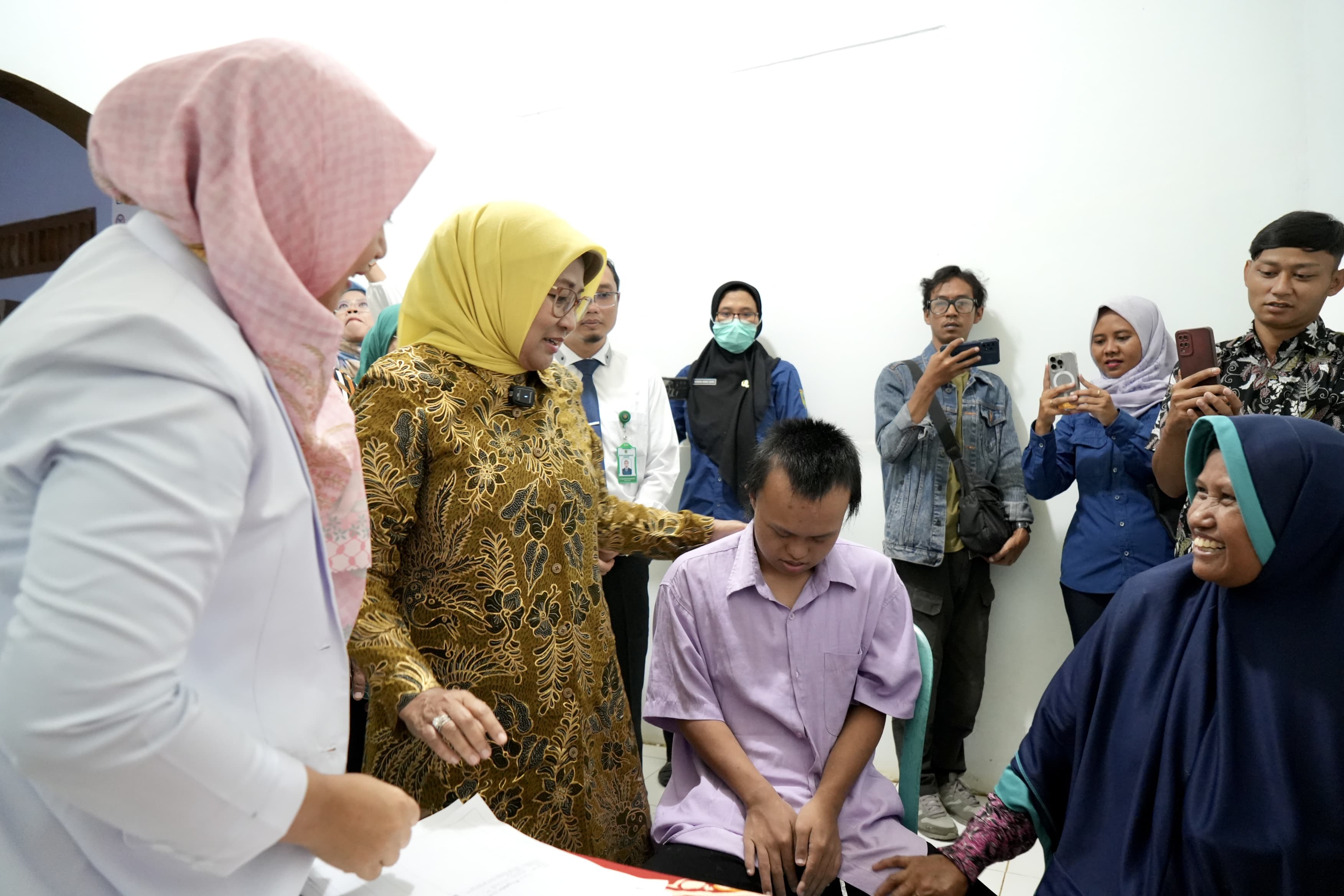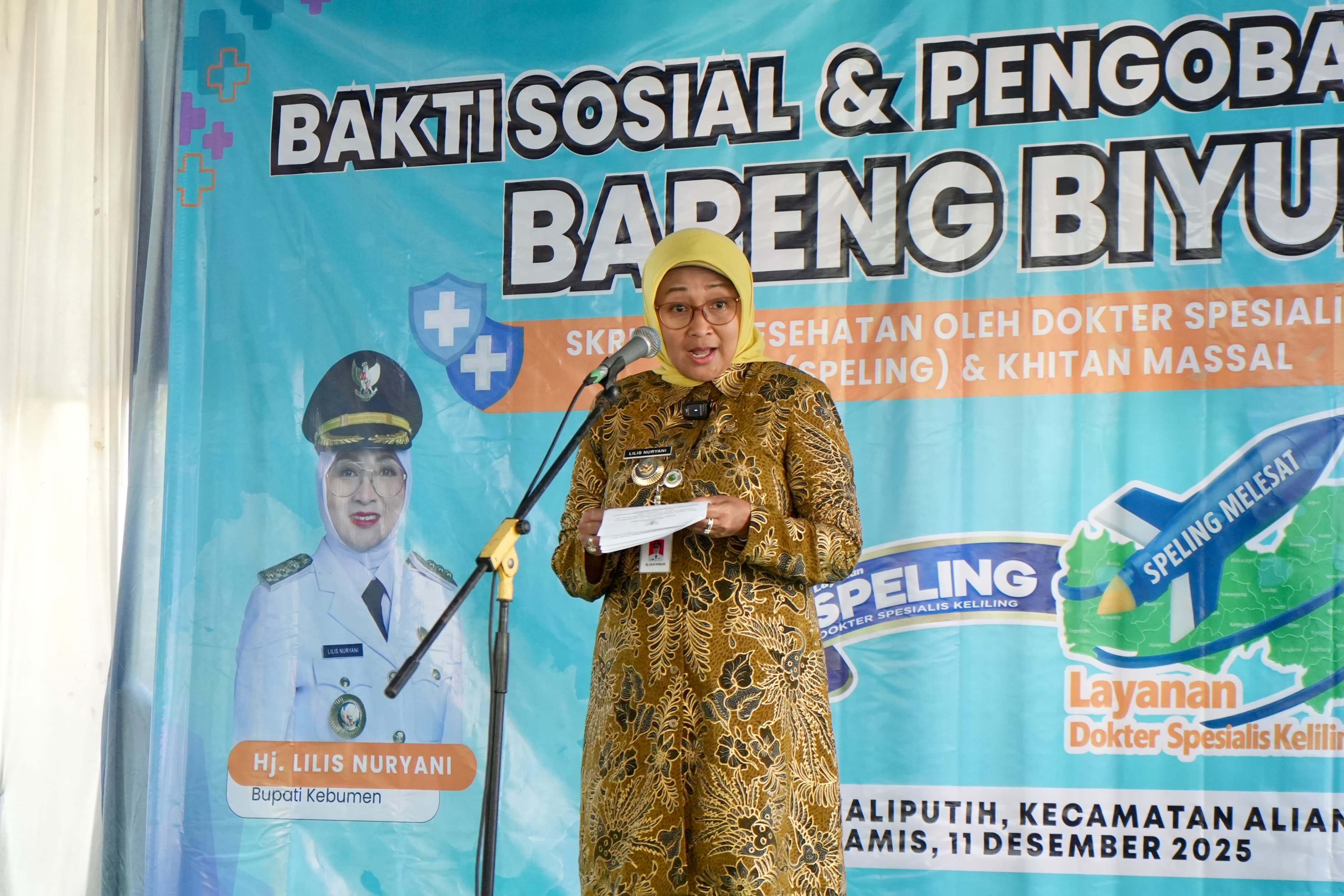 "Betul ya ibu-ibu kalau untuk salat susah? Nah, nanti ada dokter yang mengobati. Selagi ada pengobatan gratis, Bapak/Ibu silakan keluhannya disampaikan, nanti dokter akan menangani," pesan Bupati Lilis.
