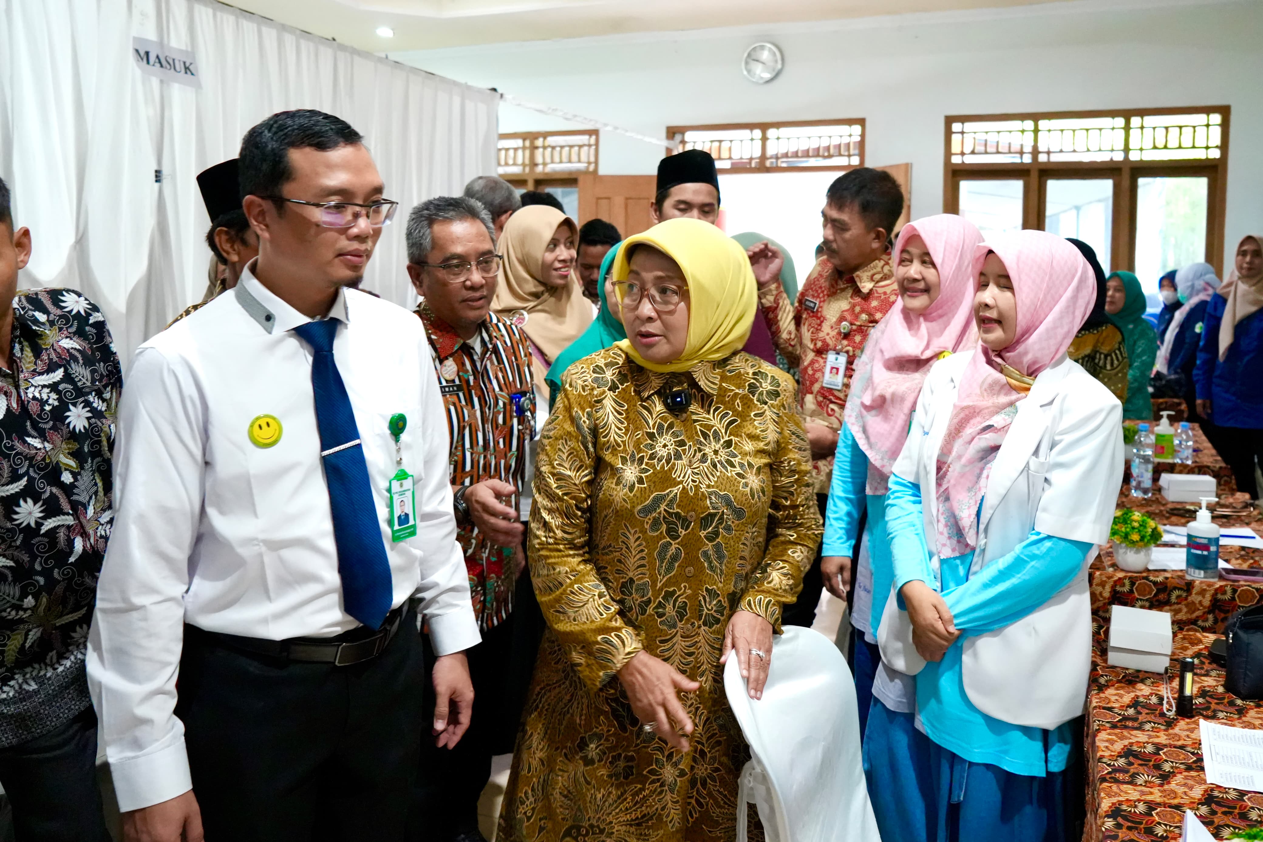 Bupati Lilis memanfaatkan kesempatan tersebut untuk berinteraksi langsung dengan warga, menanyakan keluhan kesehatan seperti darah tinggi atau kesulitan salat akibat sakit lutut.